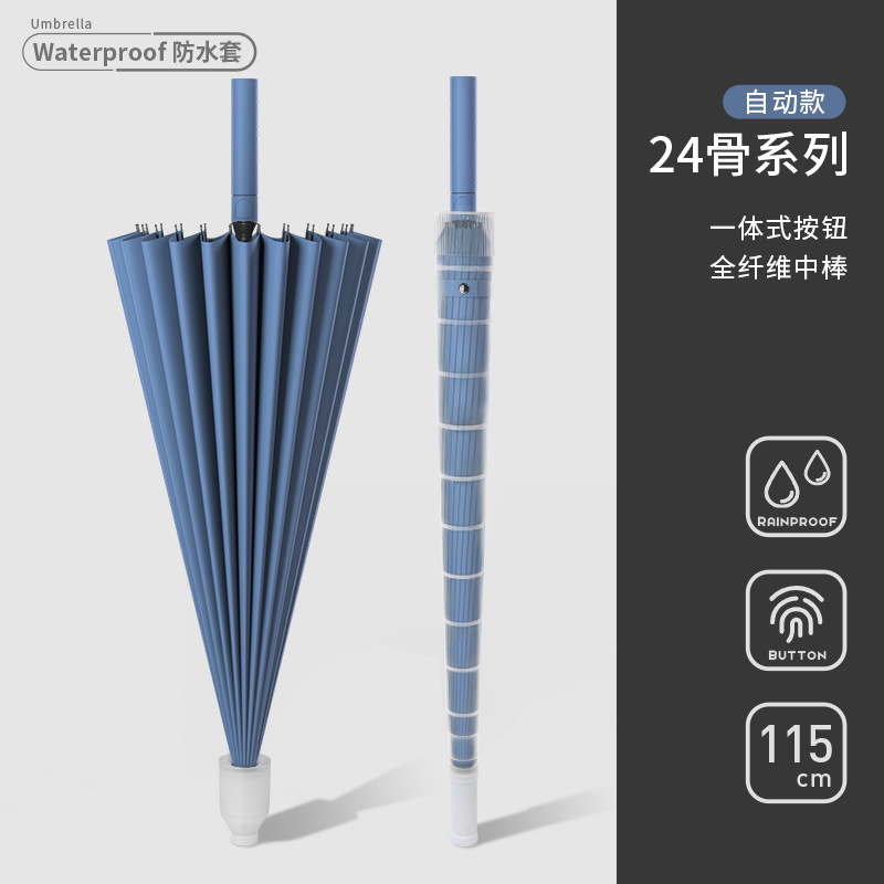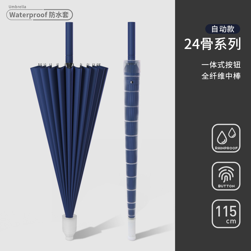 • [풀 파이버 미디엄 로드 + 방풍 섬유 뼈]⭐방수 커버 24리브 대형 네이비 블루 - 폭풍우 방지 우산