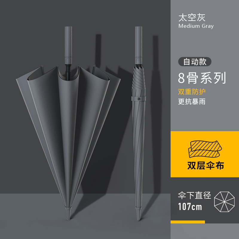 • [이중 두꺼워진 우산천, 누수방지 + 방풍섬유골] [자동] 8본 스페이스 그레이 - 무료우산커버