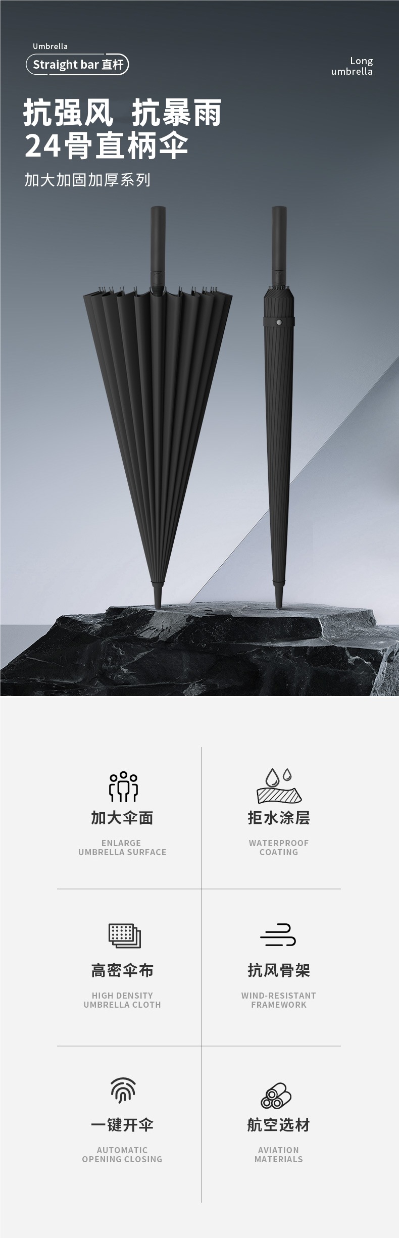 24-뼈 긴 손잡이 우산 남자의 큰 자동 폭풍우 우산 강화 강한 바람에 강한 직선 우산