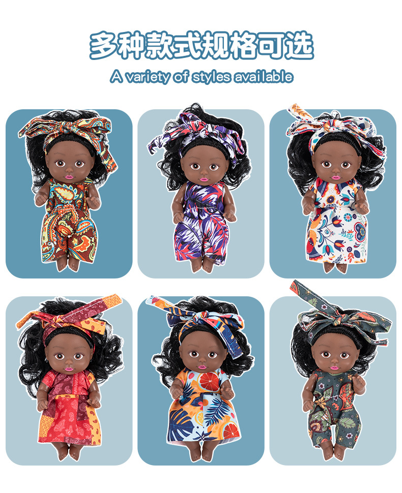 3.5 인치 11cm 검은 재생 인형 시뮬레이션 아기 아프리카 검은 인형 소녀 공주 선물 상자 국경스토어 가기