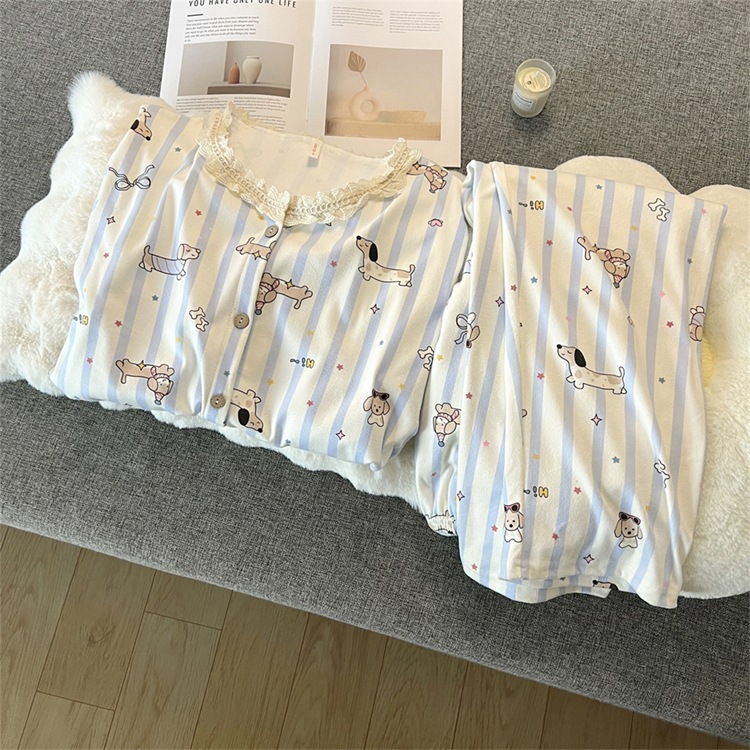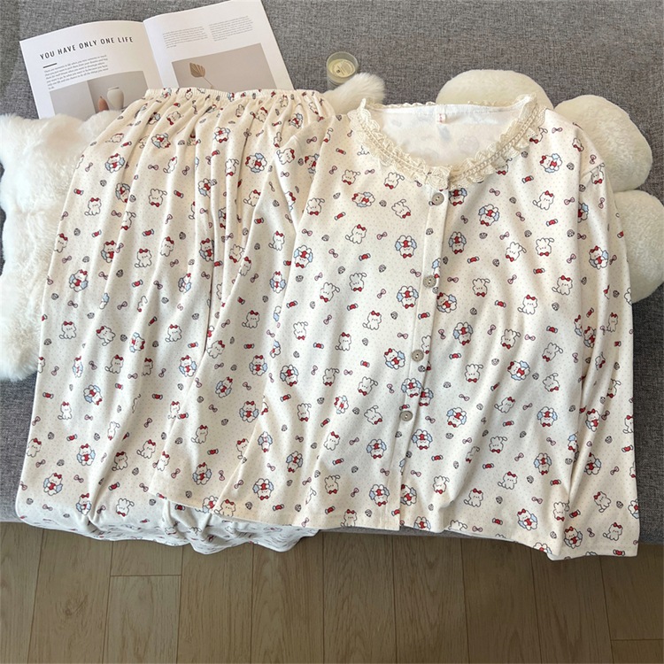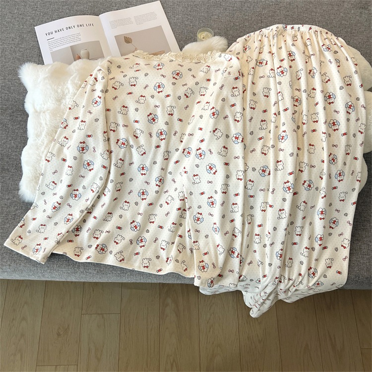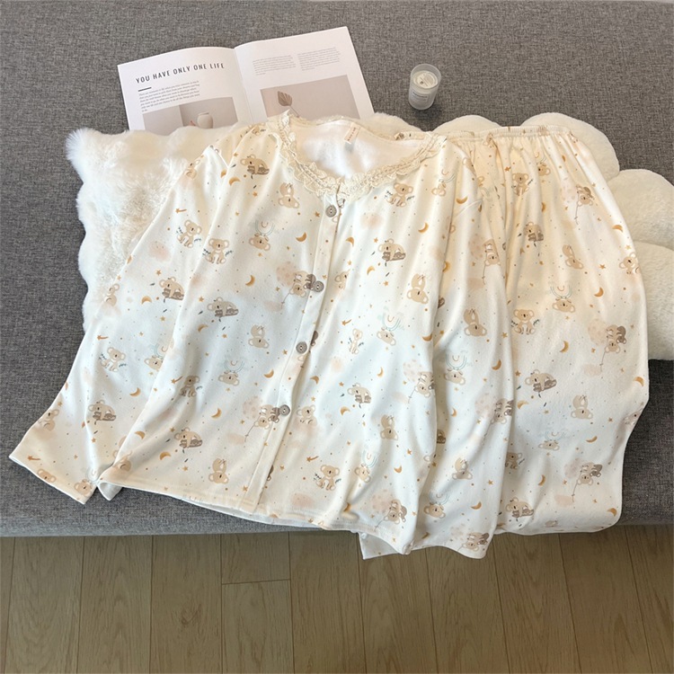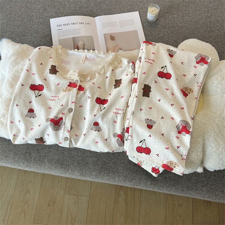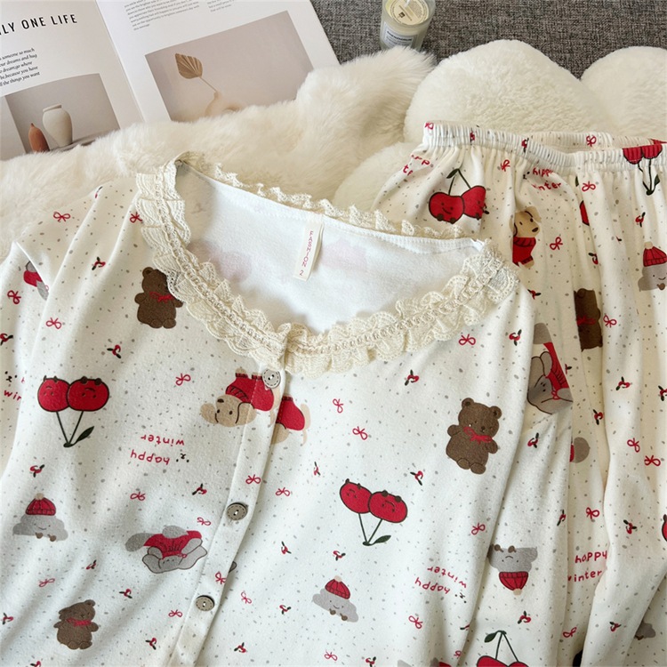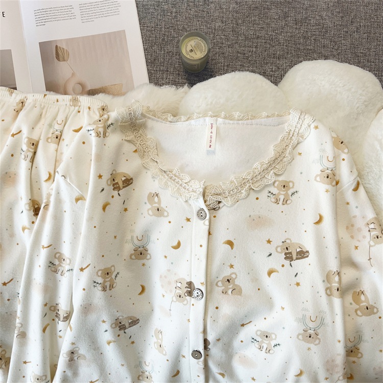2024 새로운 파자마 여성의 가을과 겨울 독일 벨벳 인쇄 두꺼운 기모 크루 넥 레이스 홈 의류 국경 도매스토어 가기