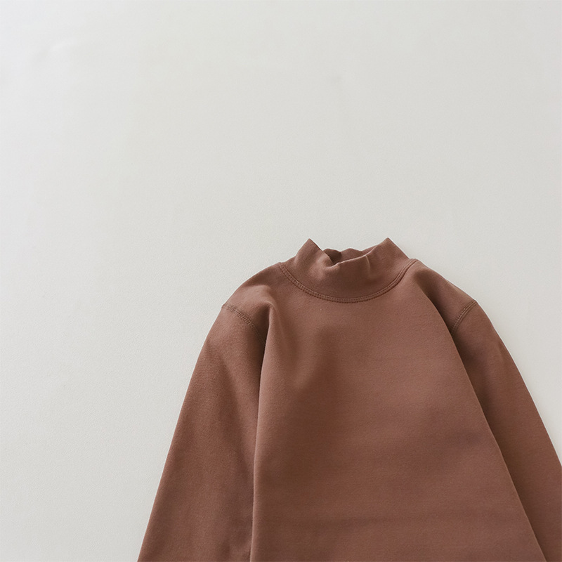 클래스 A 어린이 열 속옷 면화 반 높이 칼라 소년베이스 셔츠 가을 및 겨울 소녀 큰 어린이 가을 옷 싱글 피스 탑