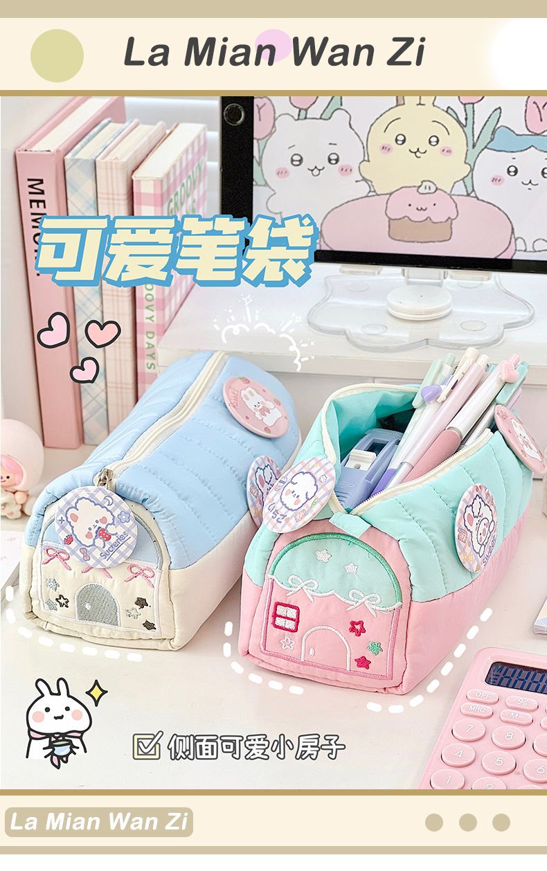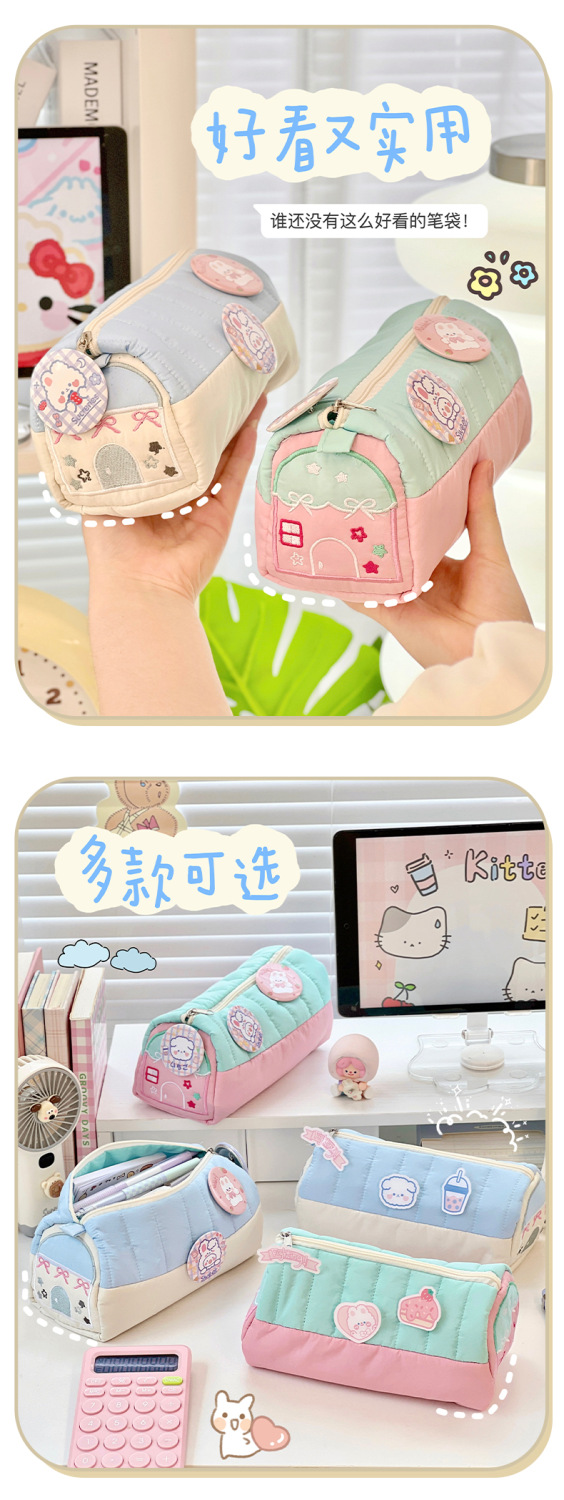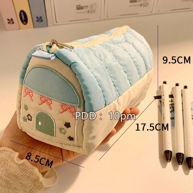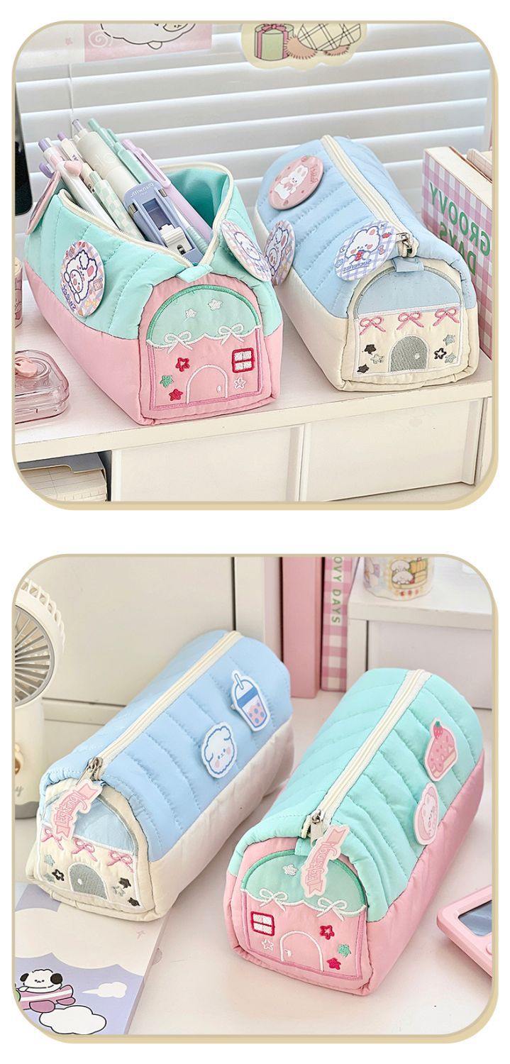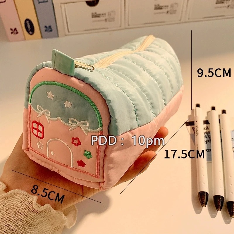 Ins 높은 가치의 작은 집 연필 케이스 초등 학생 문구 용 작은 귀여운 신선한 대용량 자수 보관 가방스토어 가기