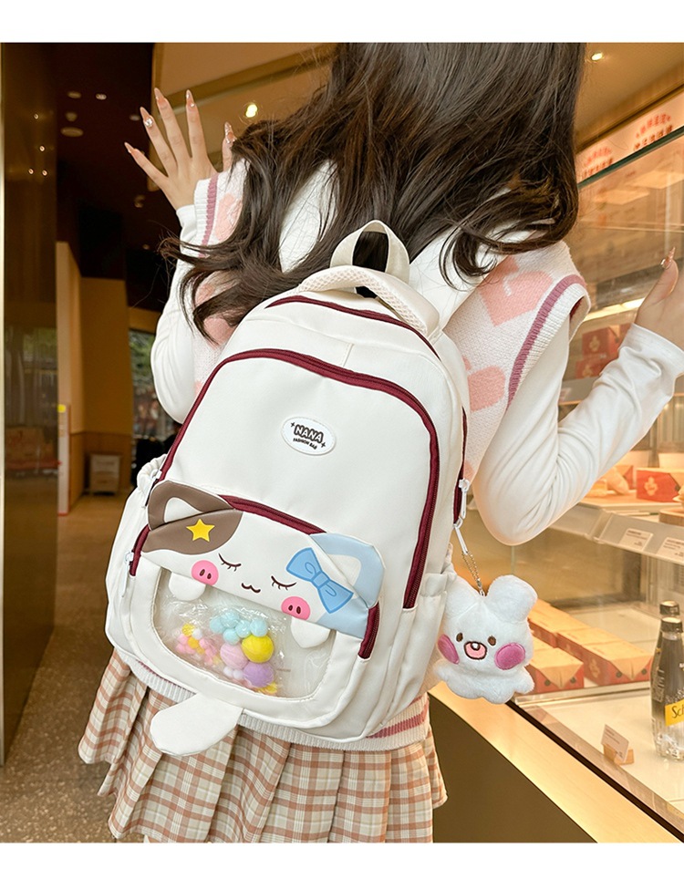 만화 캐주얼 배낭 여성 귀여운 재미 고양이 주니어 고등학교 학생 스쿨백 패션 올 매치 달콤한 신선한 배낭스토어 가기