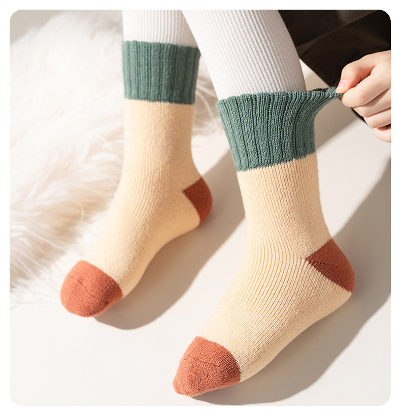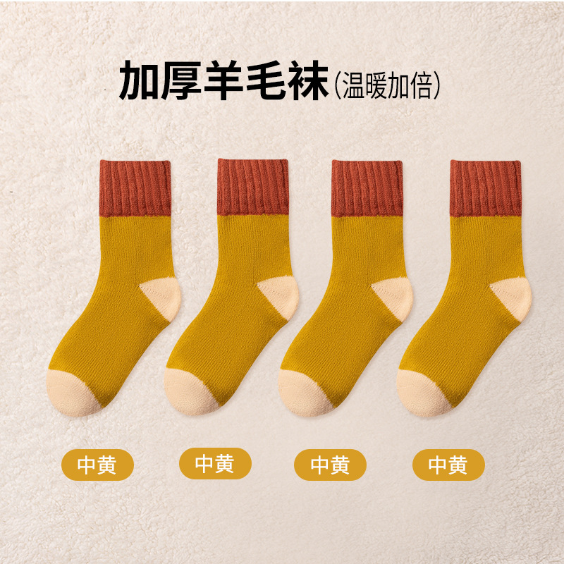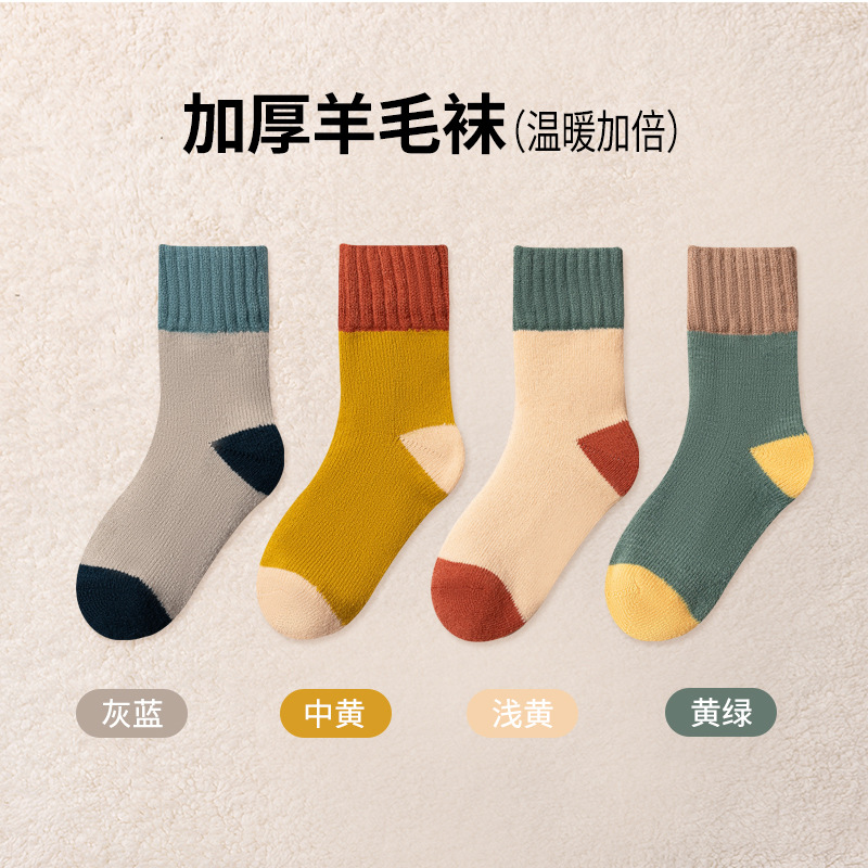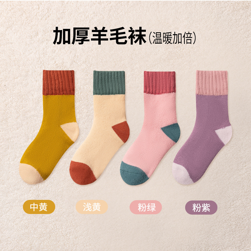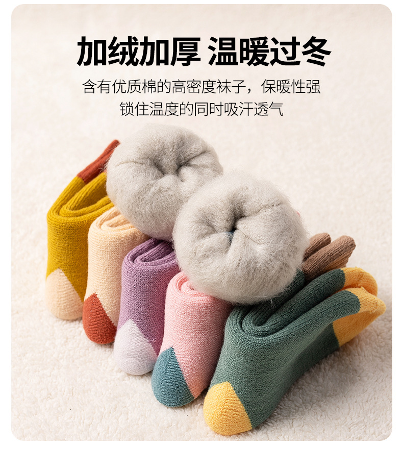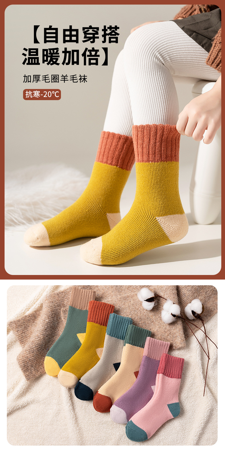 어린이 양말 겨울 기모 두꺼운 따뜻한 양모 기모 양말 느슨한 테리 컬러 매칭 대형 어린이 스타킹스토어 가기