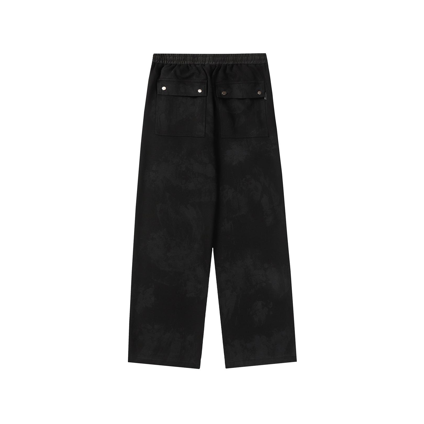 펑크 WASTE 더러운 타이-염료 Elastoic 허리 캐주얼 바지 남자 미국 스타일 트렌디 니치 느슨한 스트레이트 와이드 다리 바지