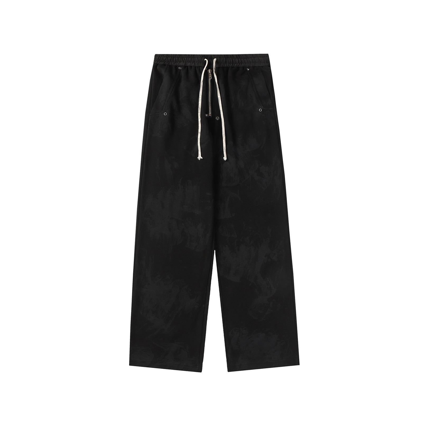펑크 WASTE 더러운 타이-염료 Elastoic 허리 캐주얼 바지 남자 미국 스타일 트렌디 니치 느슨한 스트레이트 와이드 다리 바지스토어 가기