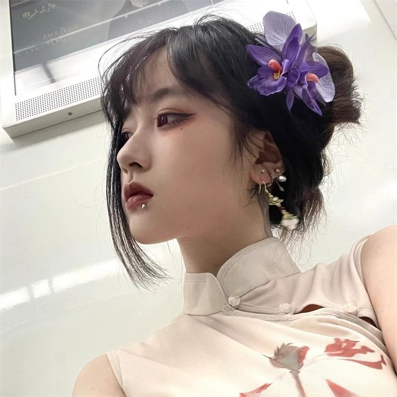 새로운 중국 스타일 섹시한 스파이스 소녀 보라색 꽃 머리핀 울트라 순수한 욕망 분위기 심비듐 꽃 머리핀 사진 헤어 액세서리스토어 가기
