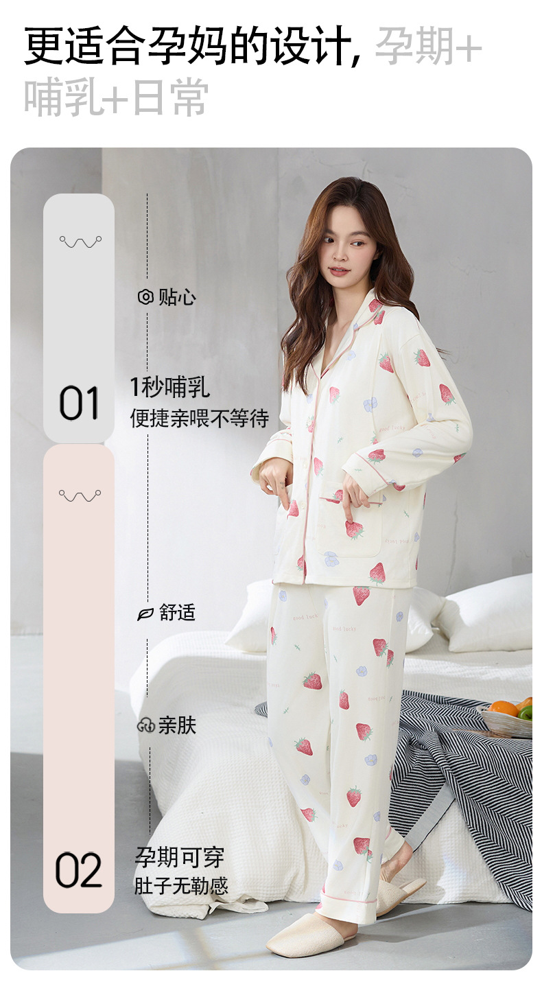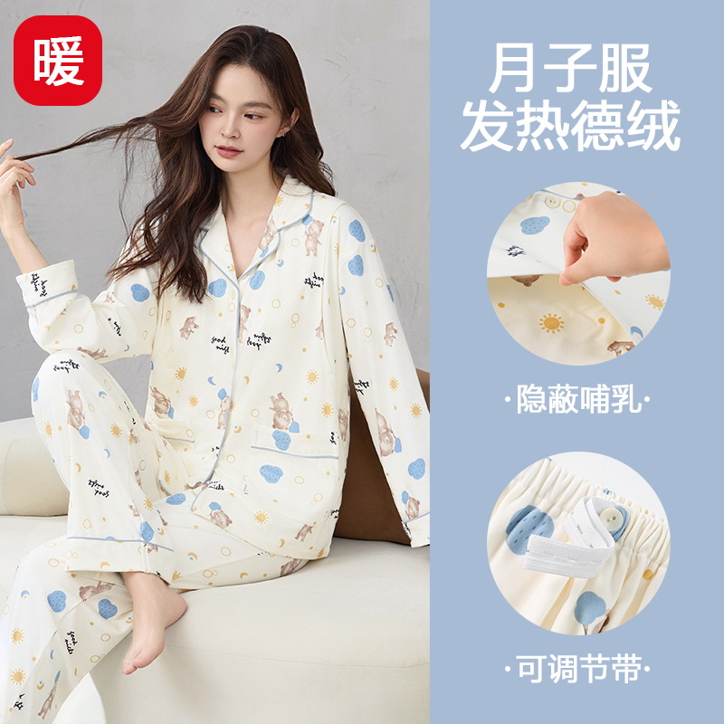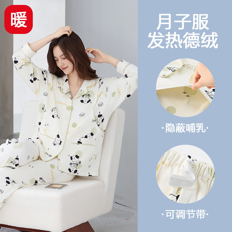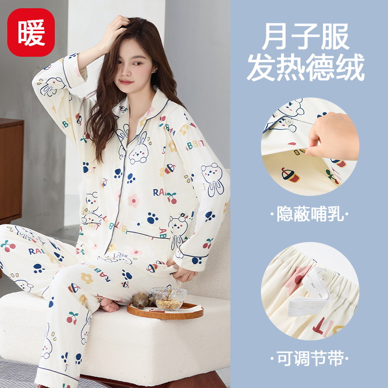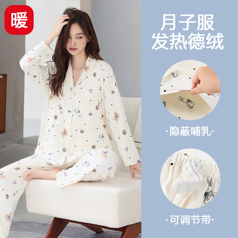 De Rong 카디건 월간 의류 12 월 1 월 가을과 겨울 임산부 간호 파자마 산후 요양원 의류 세트스토어 가기