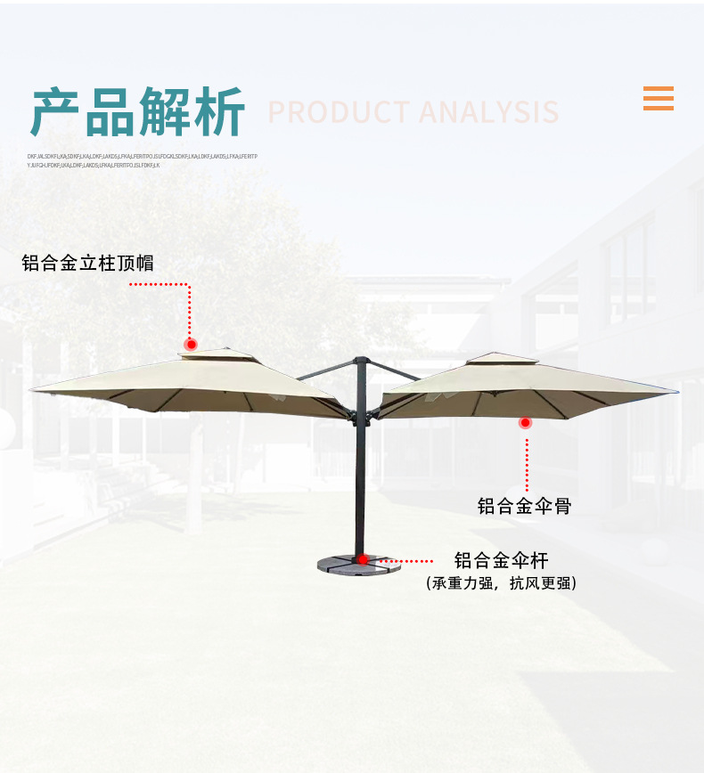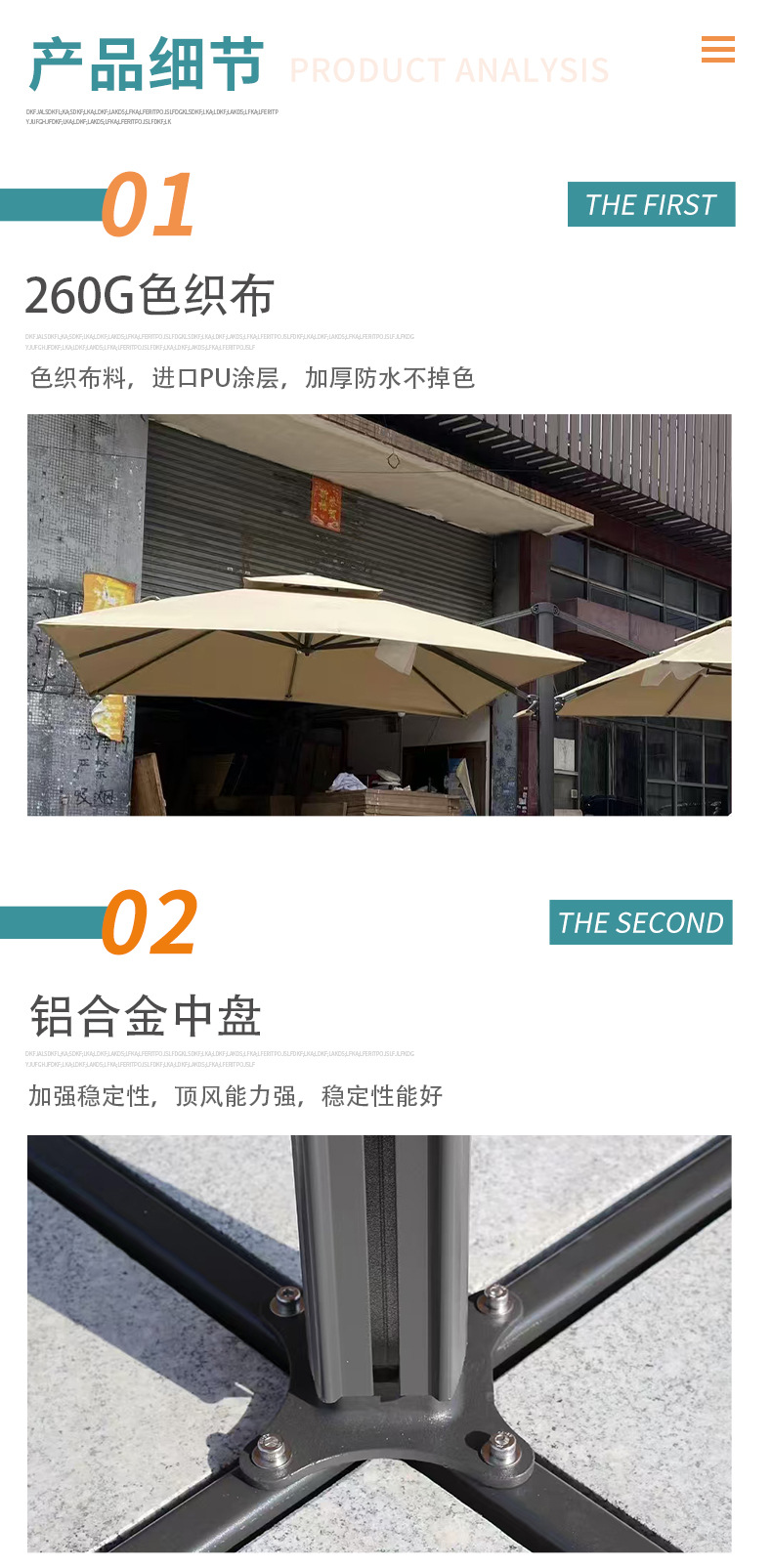 • 우산 본체 260*65*17-45kg에는 90kg 부채꼴 대리석이 기본으로 제공됩니다.