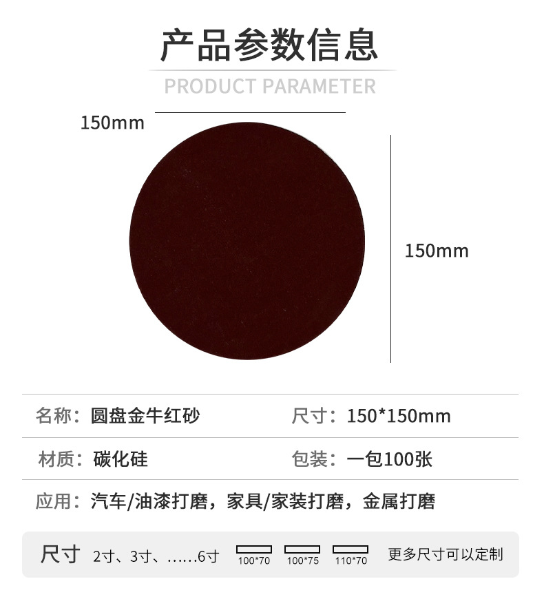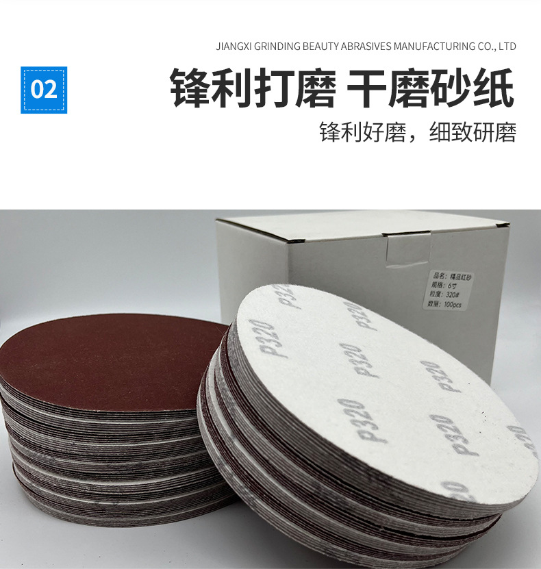 레드 샌드 6 인치 150mm 레드 샌드 플로킹 사포 디스크 연마 사포 자체 접착 플로킹 사포 벽 연마 사포스토어 가기