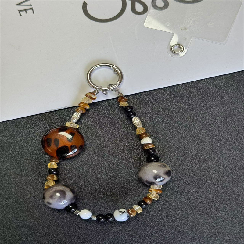 • 표범 무늬 플랫 볼 자갈 행잉 체인 + 카드