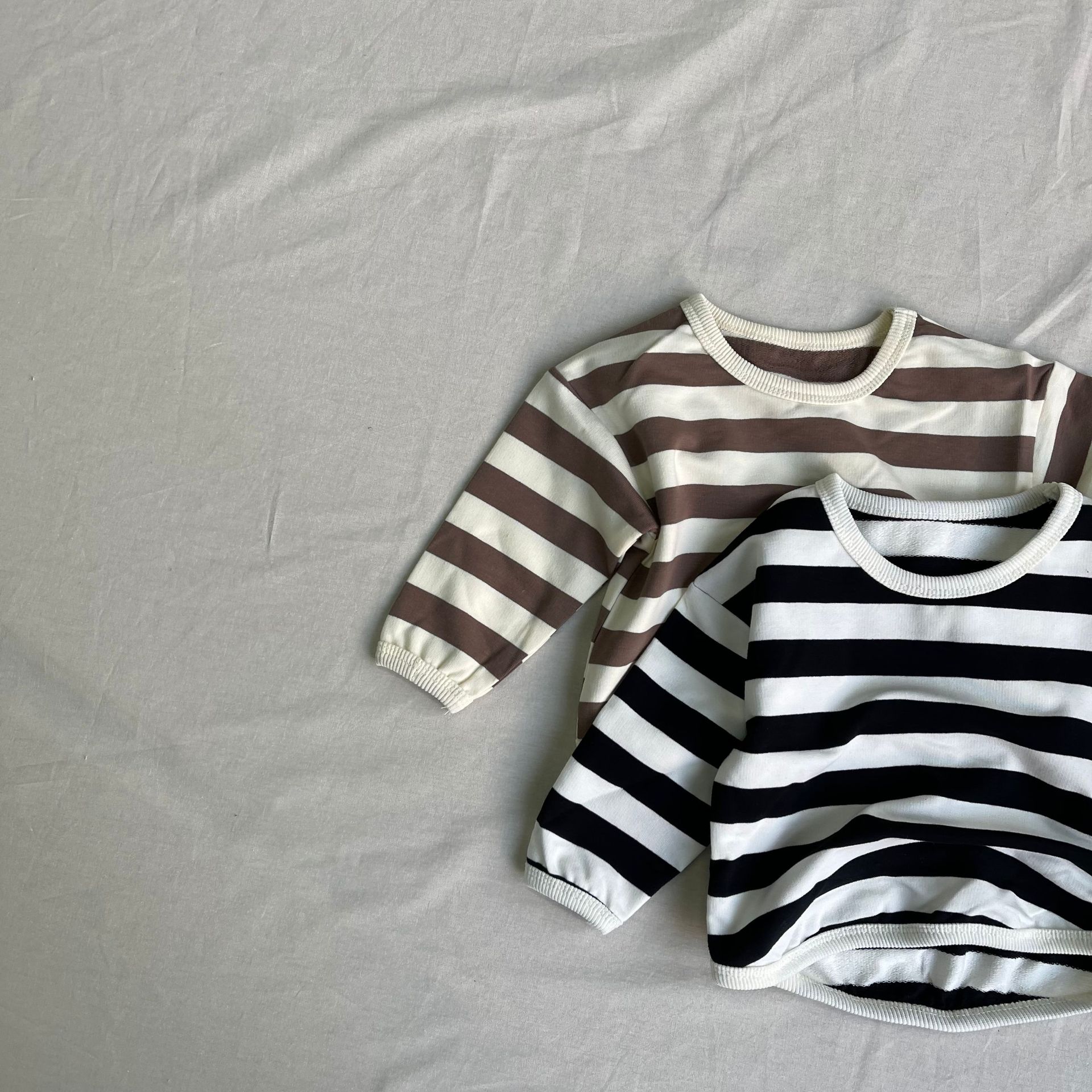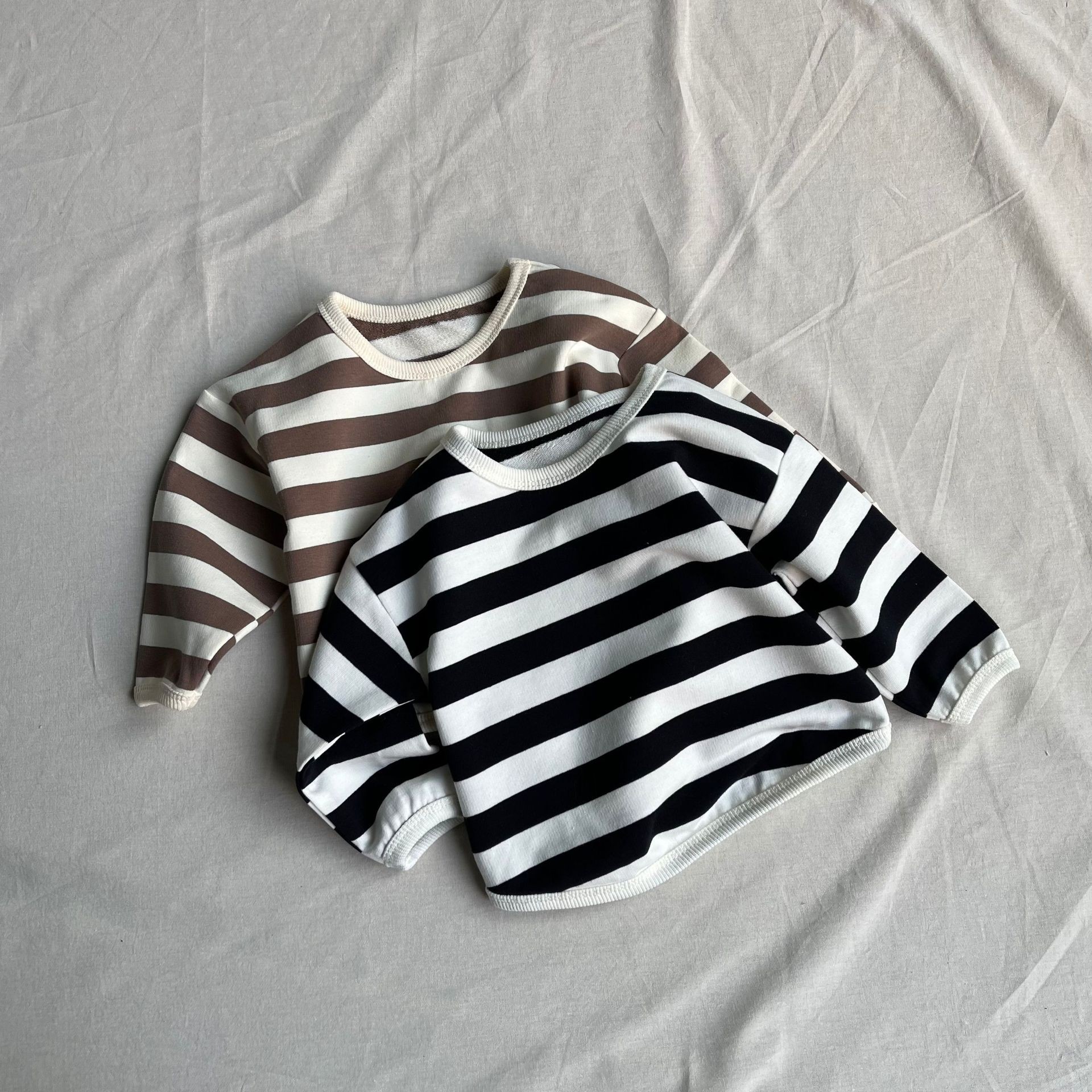 한국 스타일 봄 및 가을 새로운 도착 줄무늬 둥근 목 긴팔 티셔츠 아기의 캐주얼 트렌디 스포츠 티셔츠