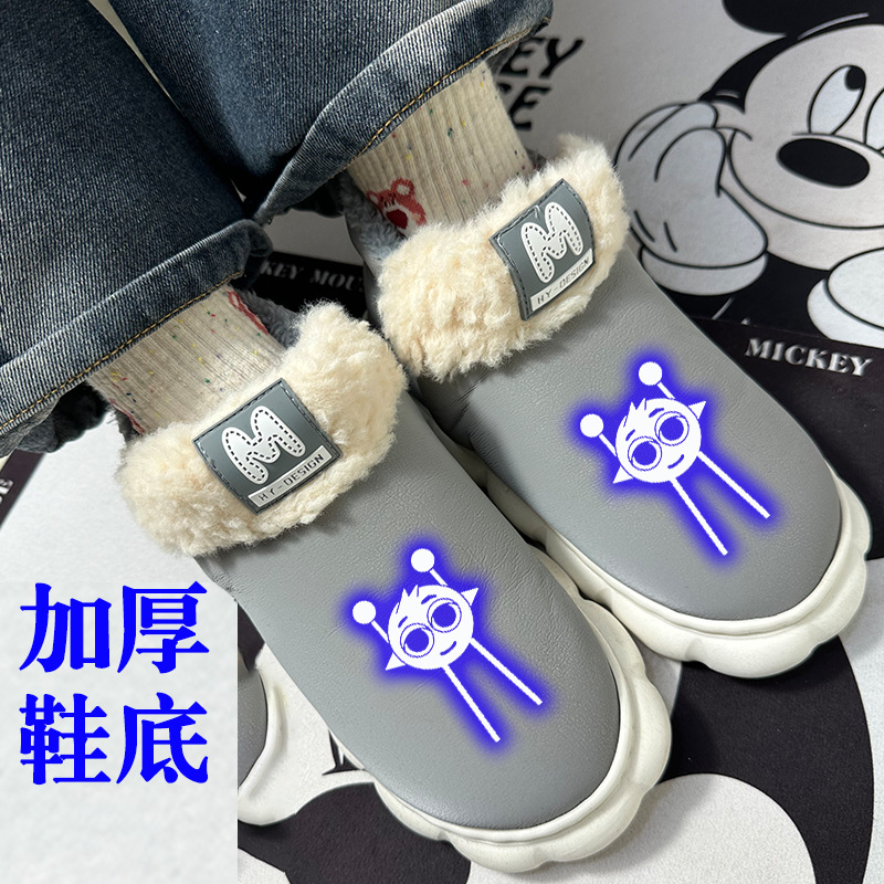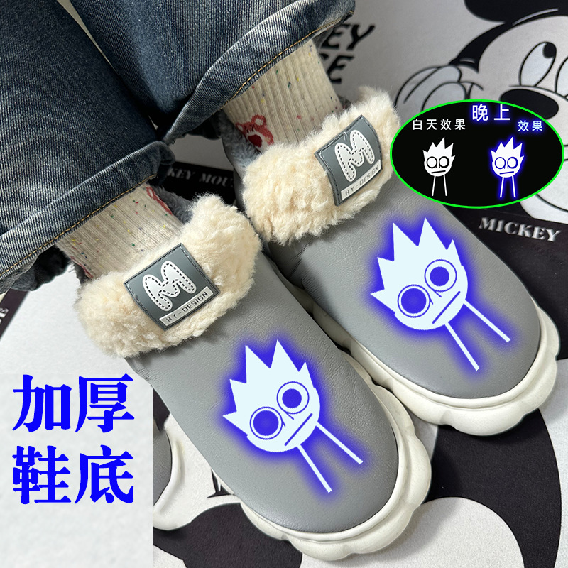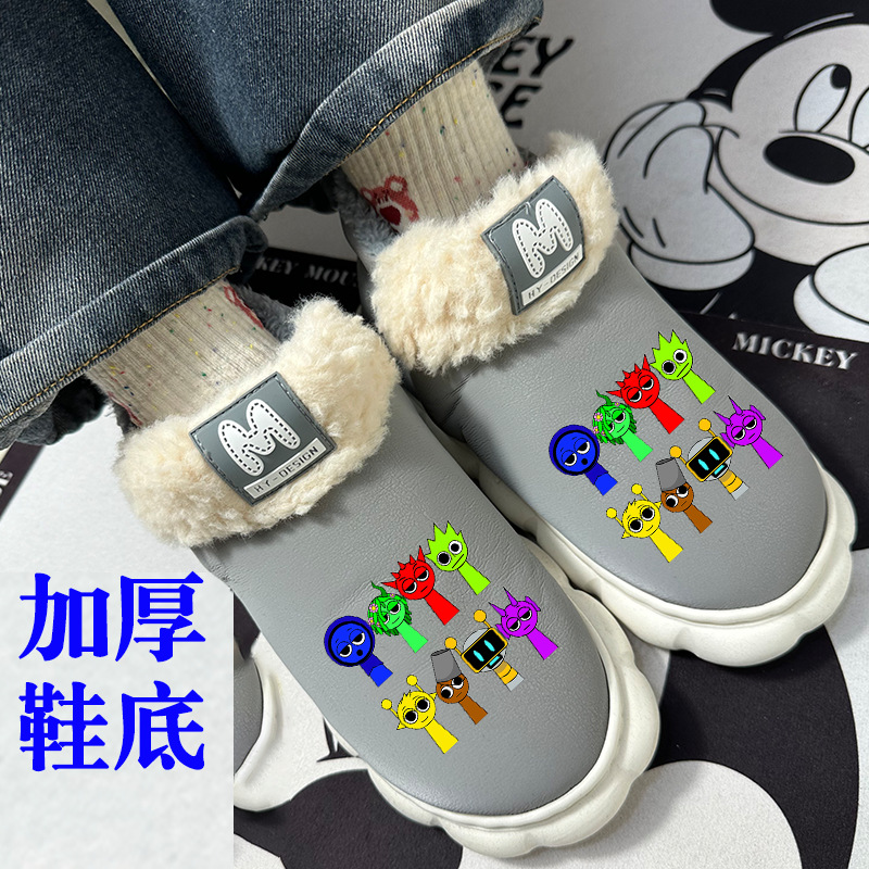 Sprunki 음악 리듬 박스 패션 방수 어린이 면 슬리퍼 소녀 겨울 홈 따뜻한 남성