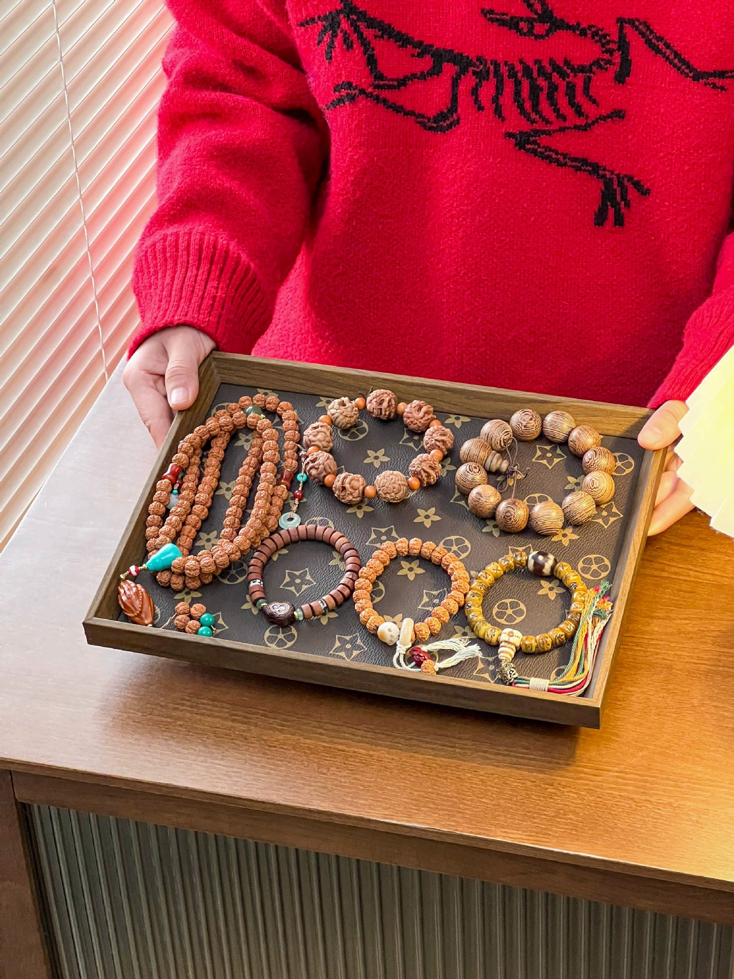Wen 놀이 팔찌 보관 상자 나무 방진 특수 디스플레이 스탠드 팔찌 보석 보관 트레이 보석 배치 트레이