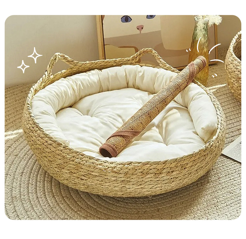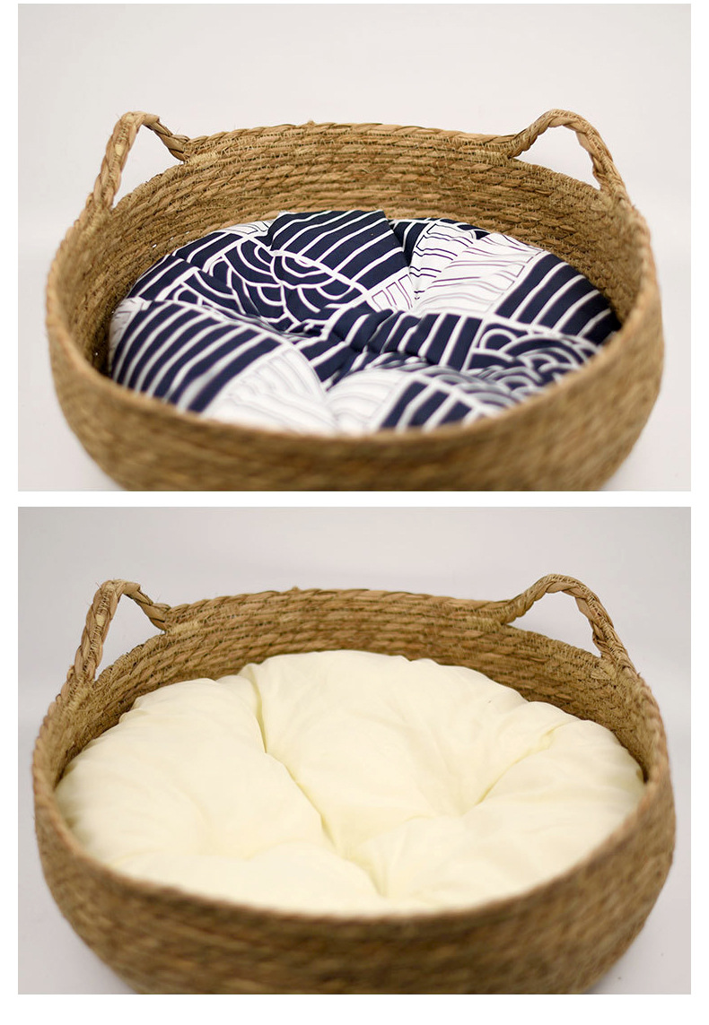 고양이 둥지 보온 매트 두꺼운 원형 둥지 집 푸초 라탄 밀짚 밧줄 면 밧줄 해외 직구 애완 고양이 두꺼운 둥지 매트