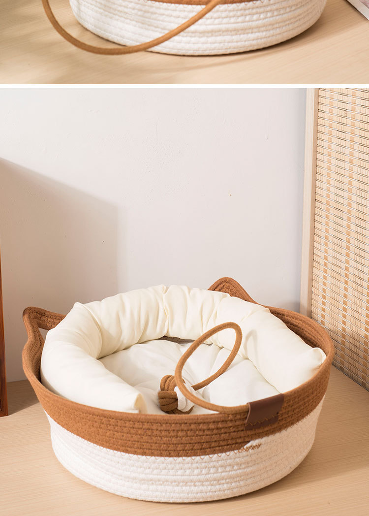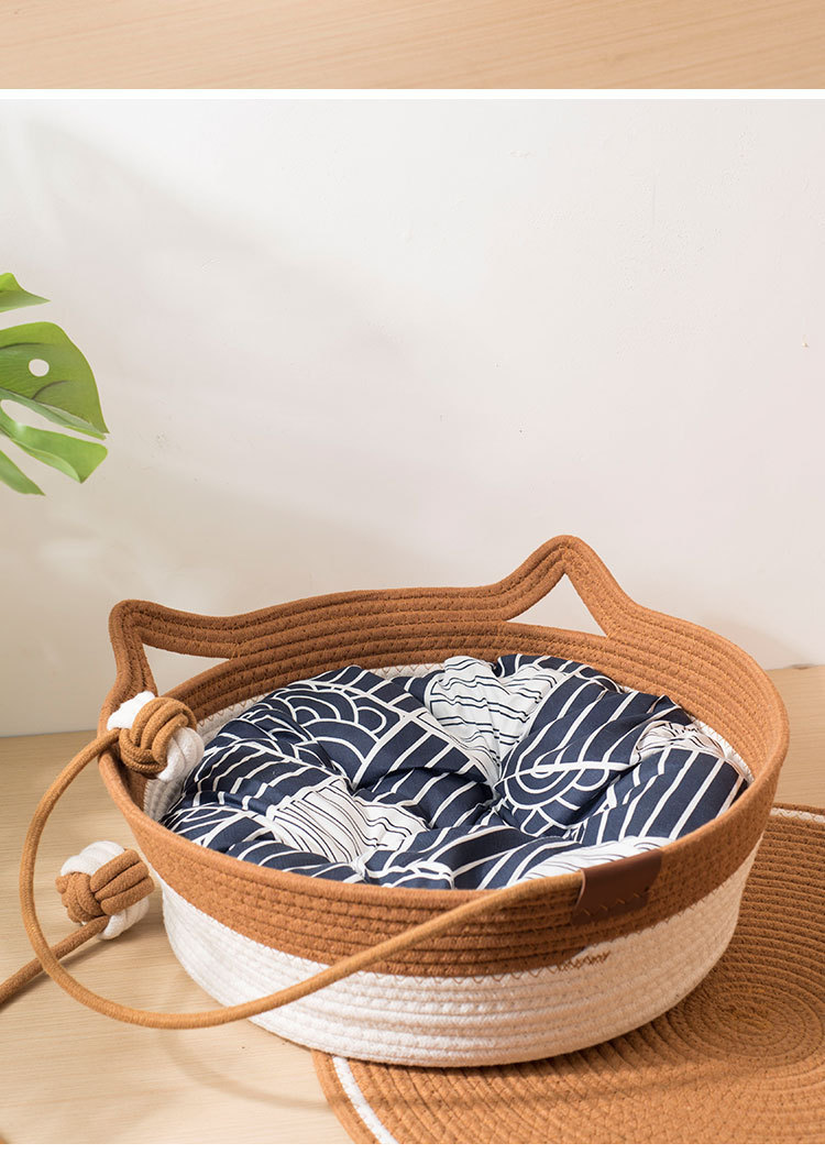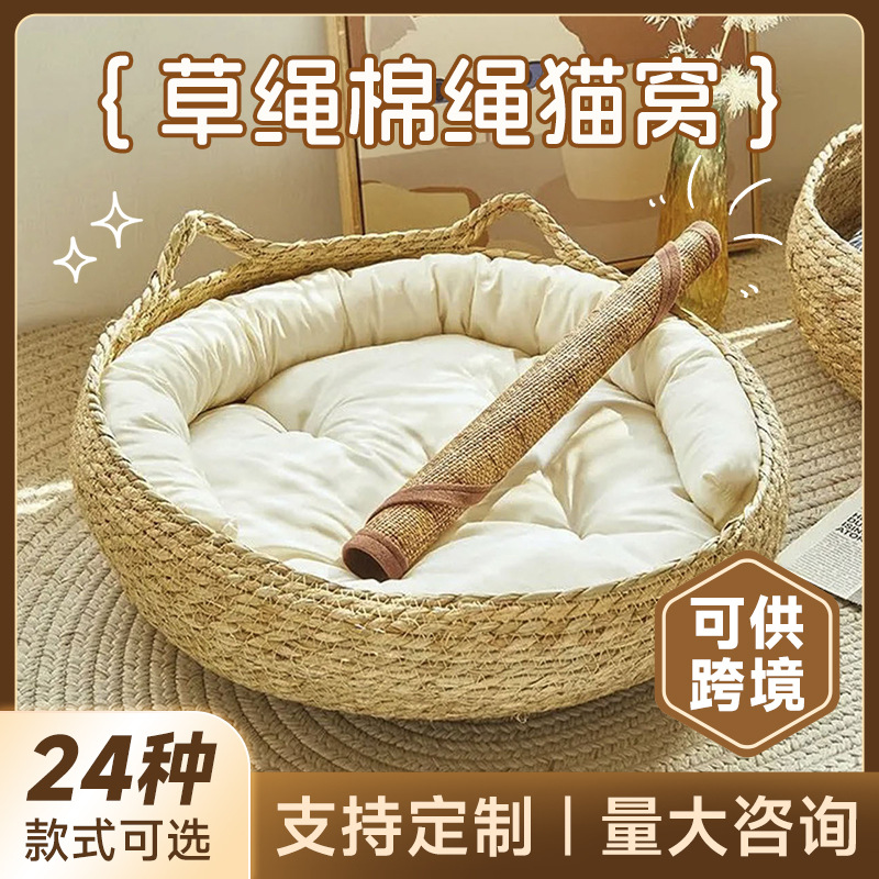 고양이 둥지 보온 매트 두꺼운 원형 둥지 집 푸초 라탄 밀짚 밧줄 면 밧줄 해외 직구 애완 고양이 두꺼운 둥지 매트스토어 가기