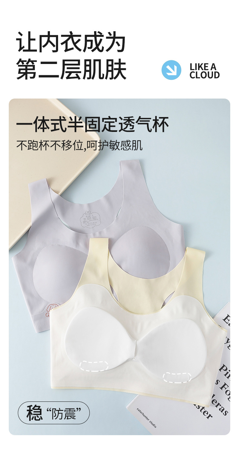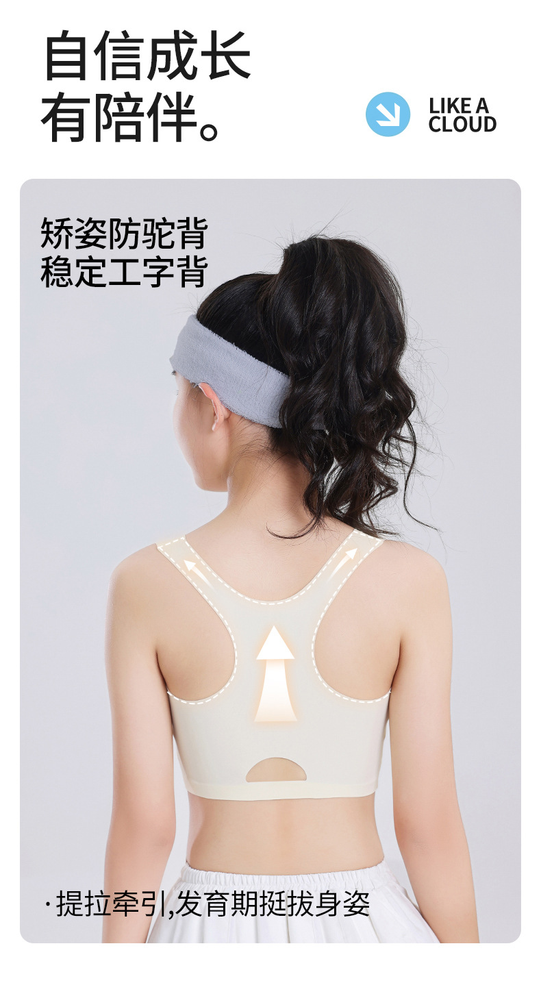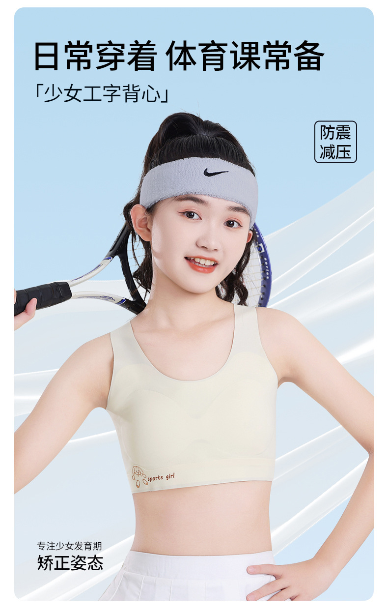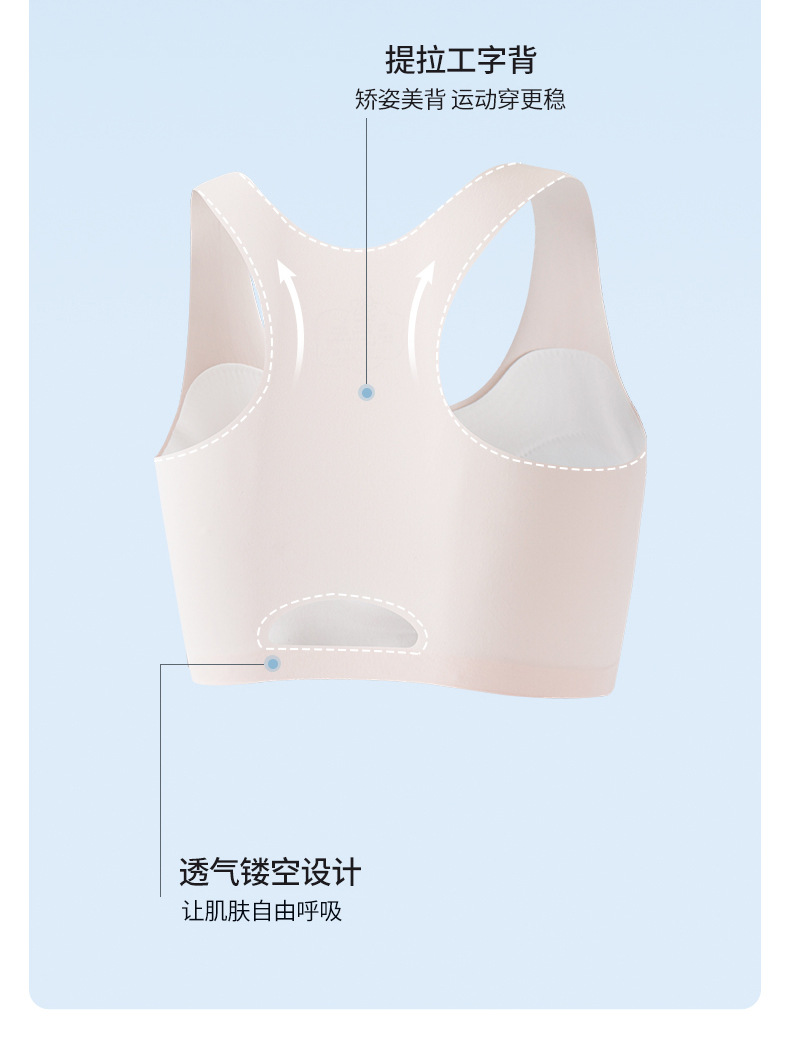 새로운 2 단계 중학교 학생 추적없는 소녀 브래지어 이동식 가슴 패드 I 자형 조끼 고등학교 학생 스포츠 속옷