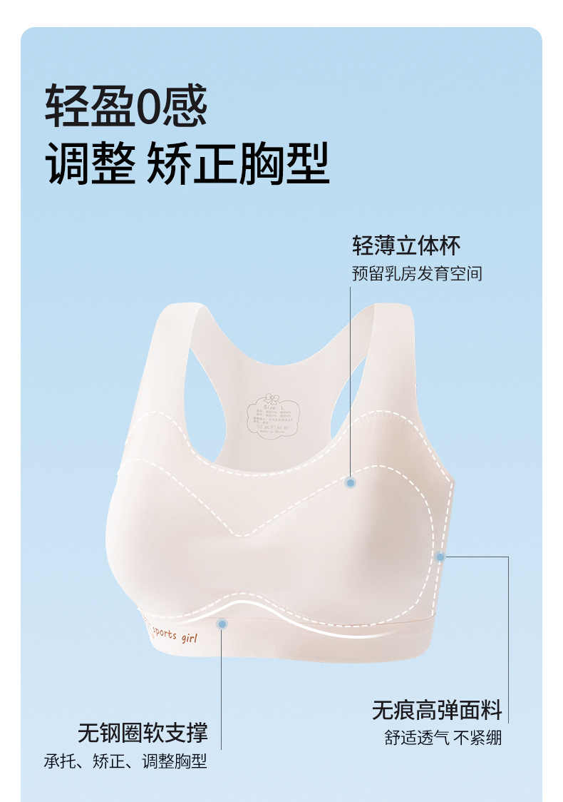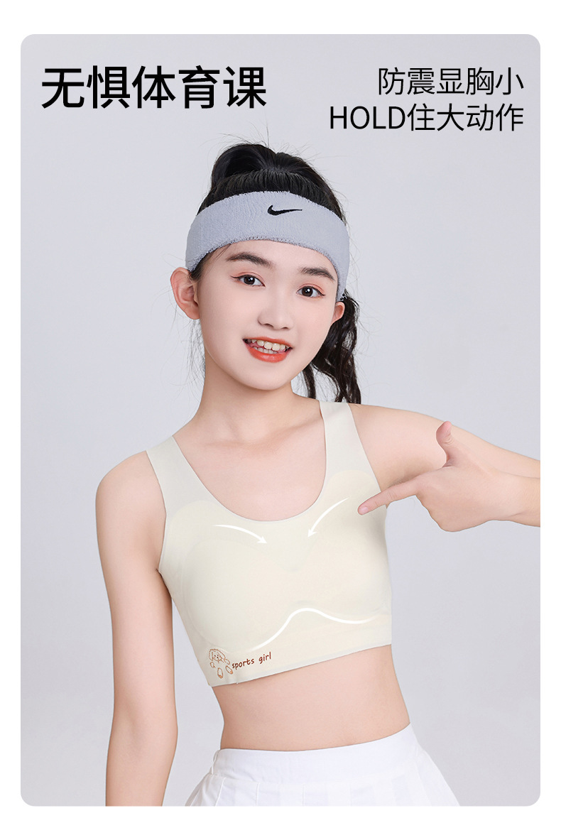 새로운 2 단계 중학교 학생 추적없는 소녀 브래지어 이동식 가슴 패드 I 자형 조끼 고등학교 학생 스포츠 속옷스토어 가기