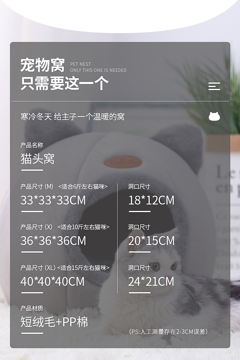 고양이 사육장 사계절 유니버설 고양이 머리 둥지 겨울 따뜻한 닫힌 고양이 집 애완 동물 침대 집 고양이 용 빌라