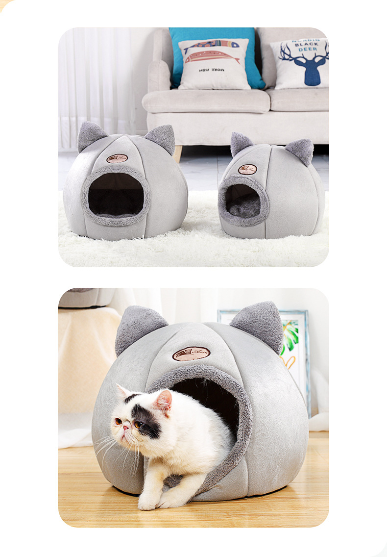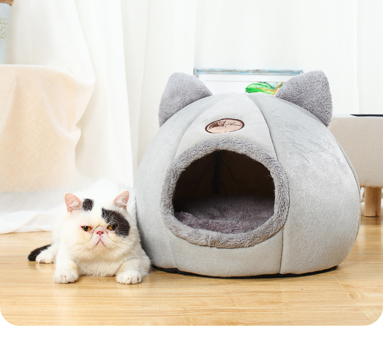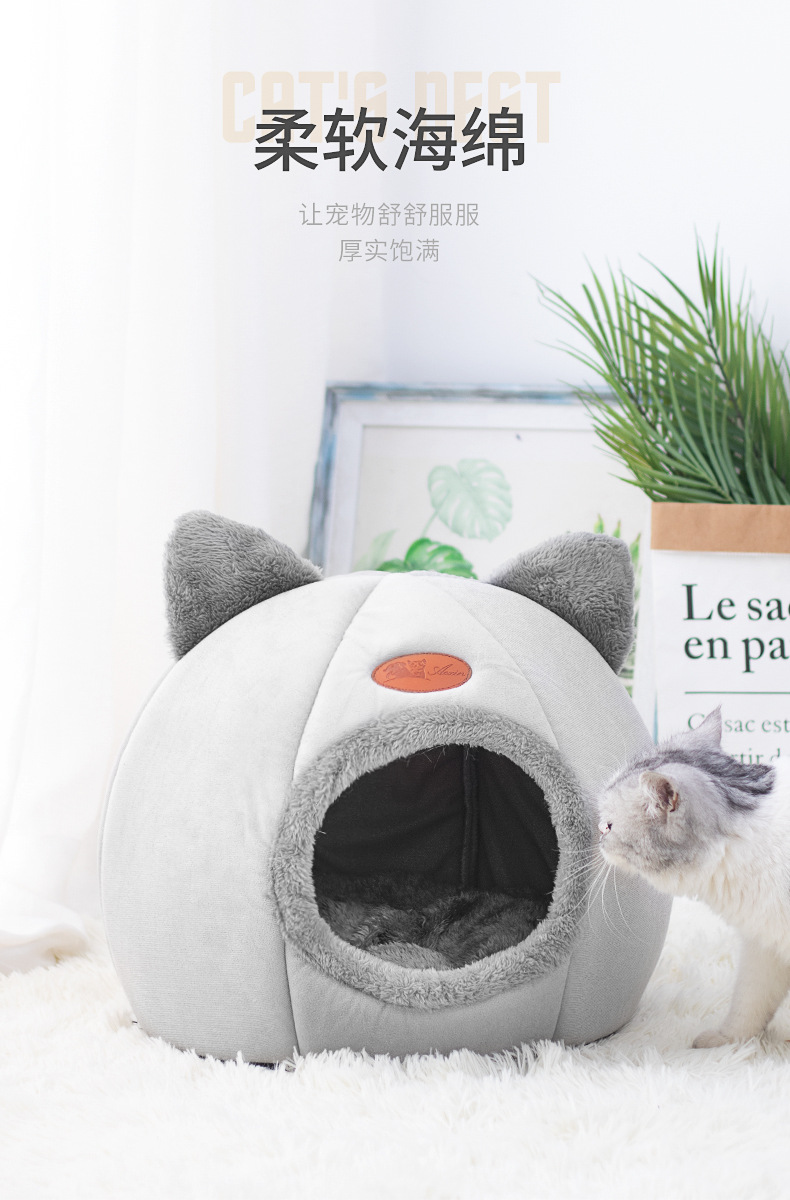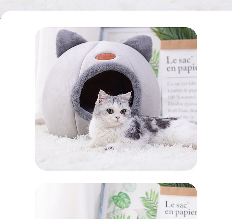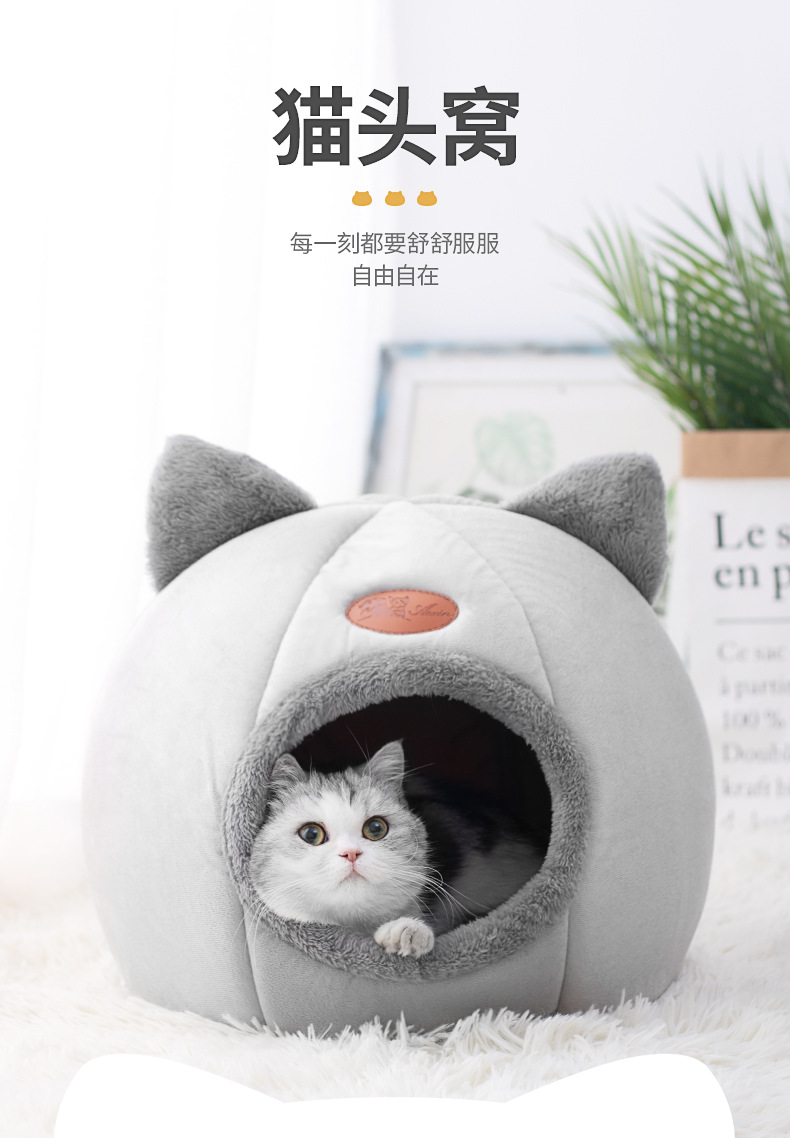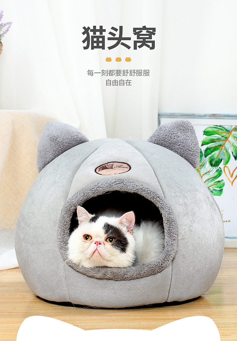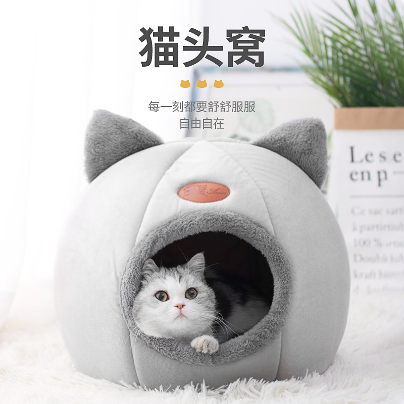 고양이 사육장 사계절 유니버설 고양이 머리 둥지 겨울 따뜻한 닫힌 고양이 집 애완 동물 침대 집 고양이 용 빌라스토어 가기