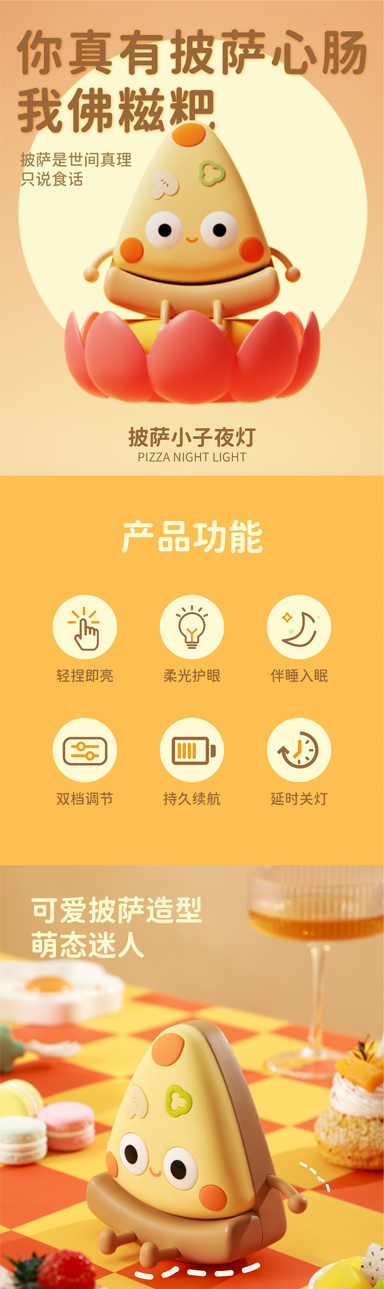 국경 간 피자 야간 조명 침실 수면 박수 조명 USB 플러그 이중 목적 침대 옆 동반자 수면 조명 타이밍 분위기 조명