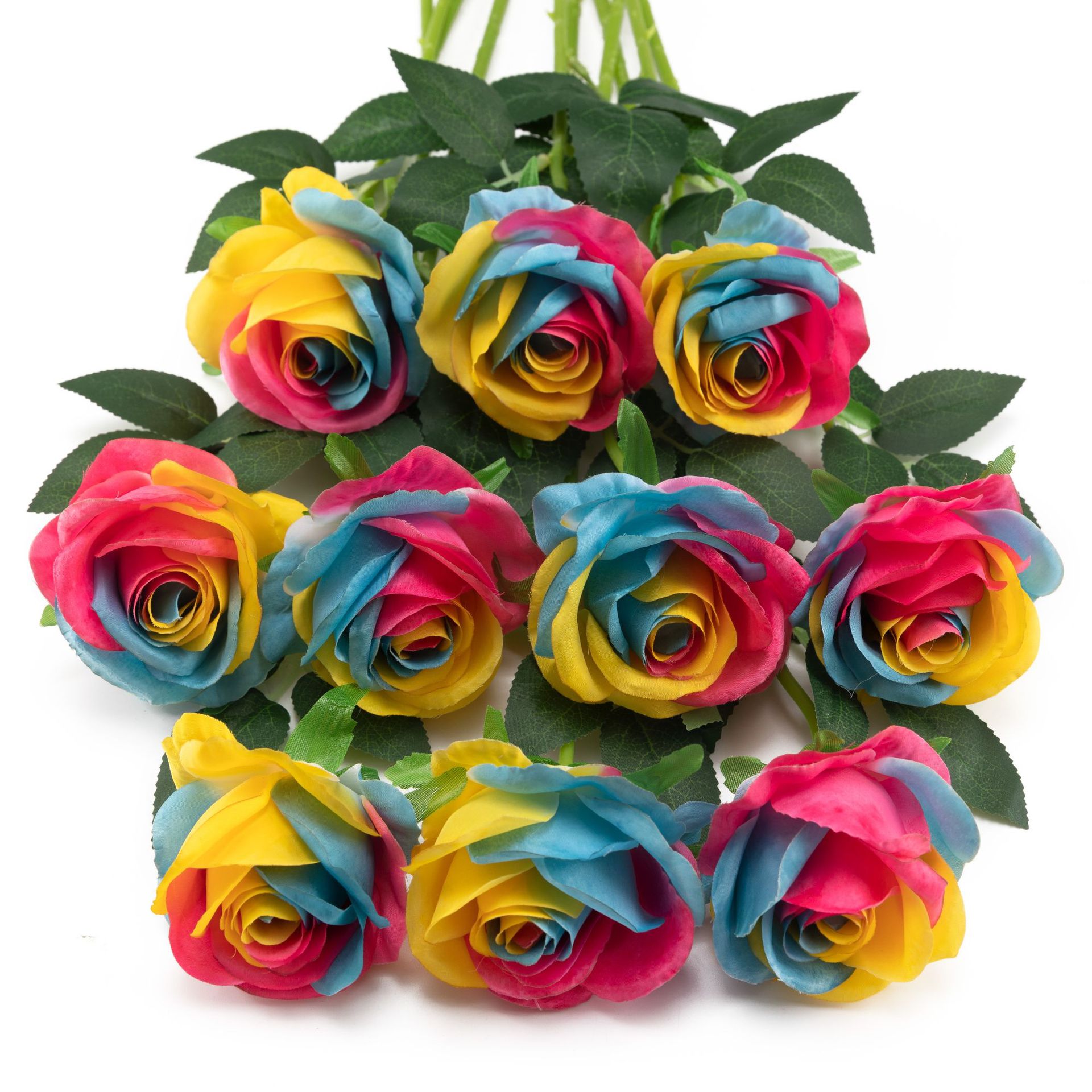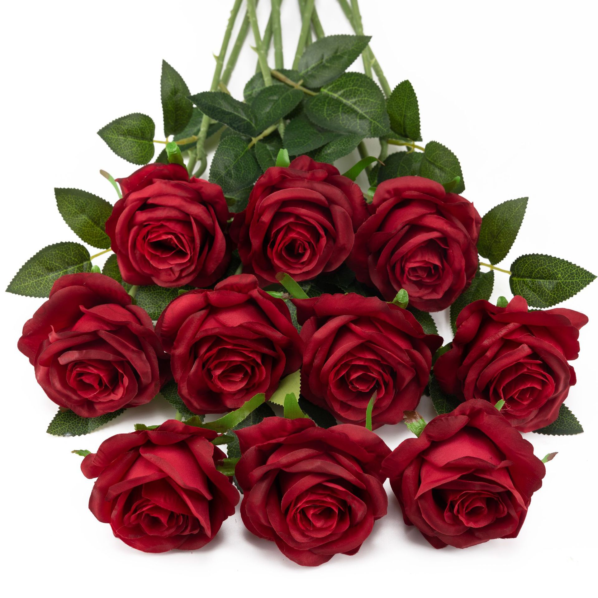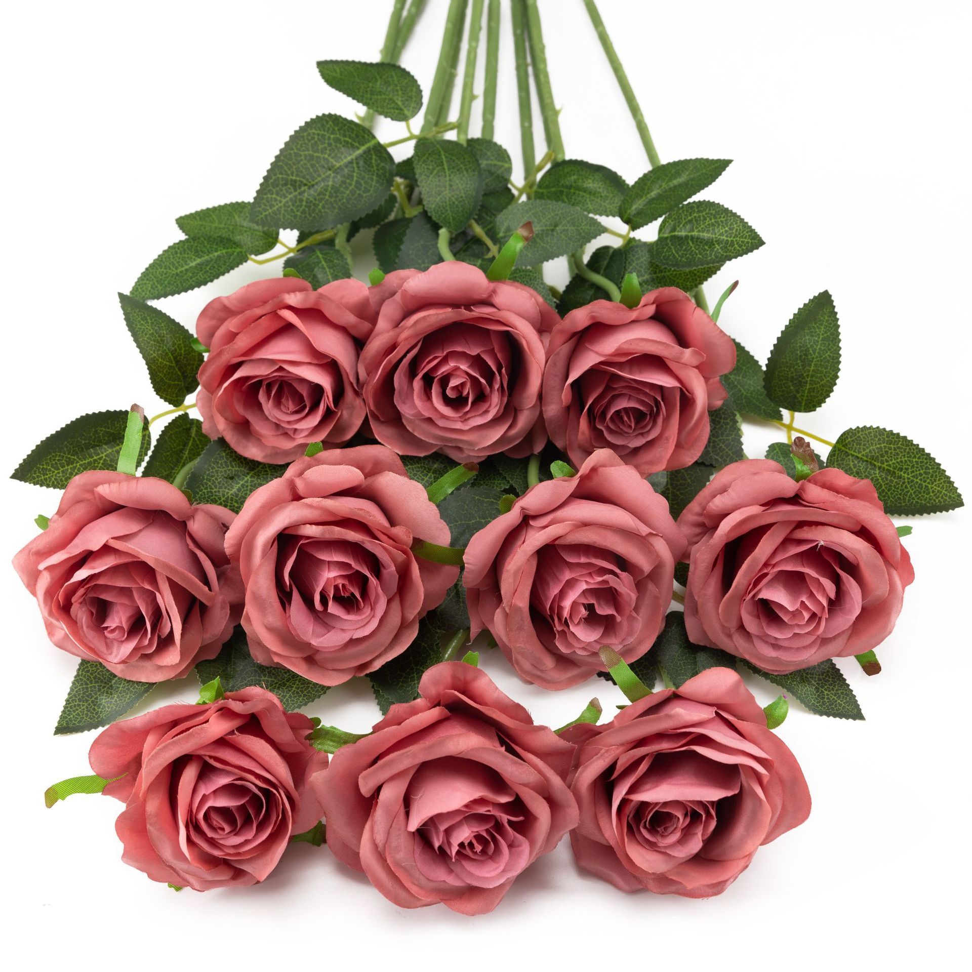 시뮬레이션 단일 장미 녹색 식물 가짜 꽃 핸들 꽃다발 들고 꽃 액세서리 크로스 국경 웨딩 홈 샵 장식 장식품스토어 가기
