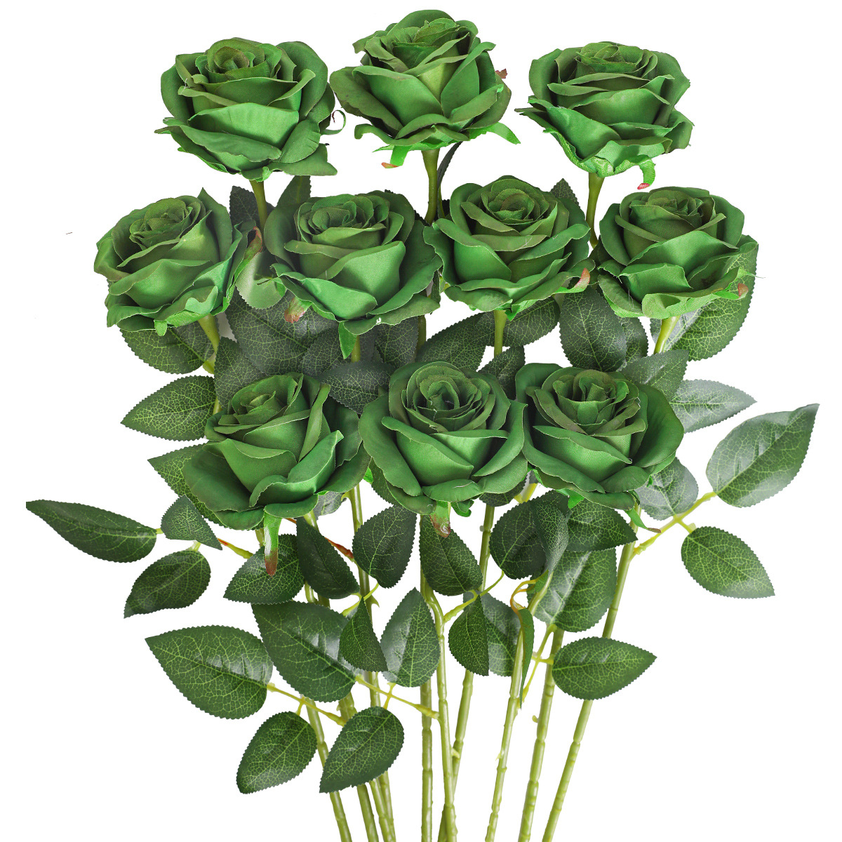 시뮬레이션 단일 장미 녹색 식물 가짜 꽃 핸들 꽃다발 들고 꽃 액세서리 크로스 국경 웨딩 홈 샵 장식 장식품
