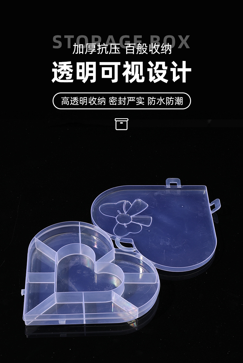여자아이들을 위한 귀여운 핑크색 하트 모양 수납함, PP 투명 뚜껑 포함, 구슬, 고무줄, 액세서리, 보석, 물감 등 보관용 플라스틱 상자스토어 가기