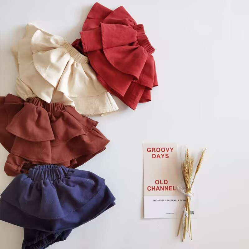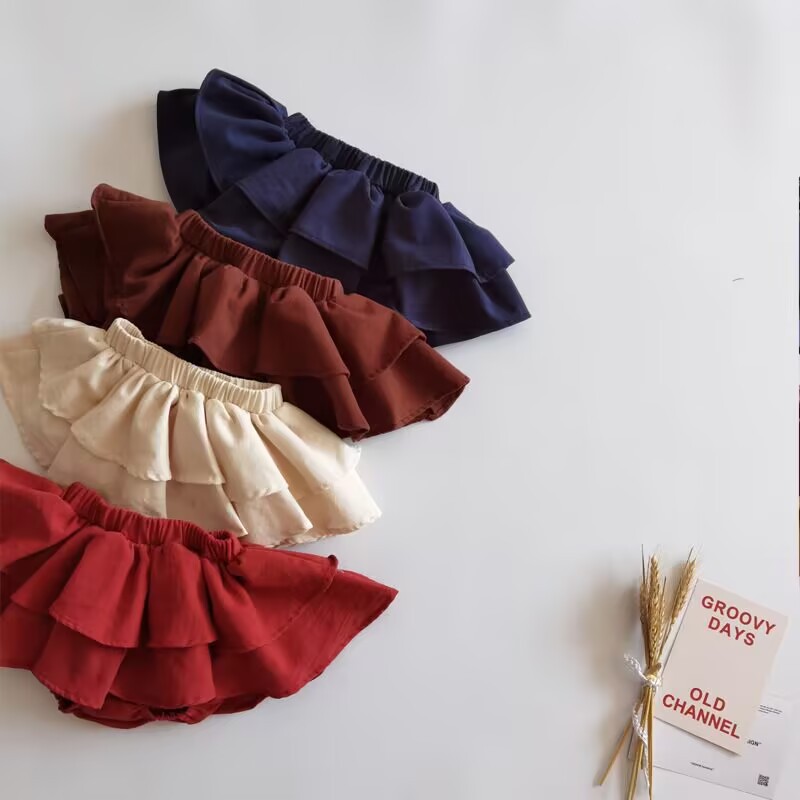 국경 간 소녀 Culottes 단색 공주 버드 반바지 대형 PP 바지 더블 레이어 러플 베이비 케이크 폰툰 스커트스토어 가기