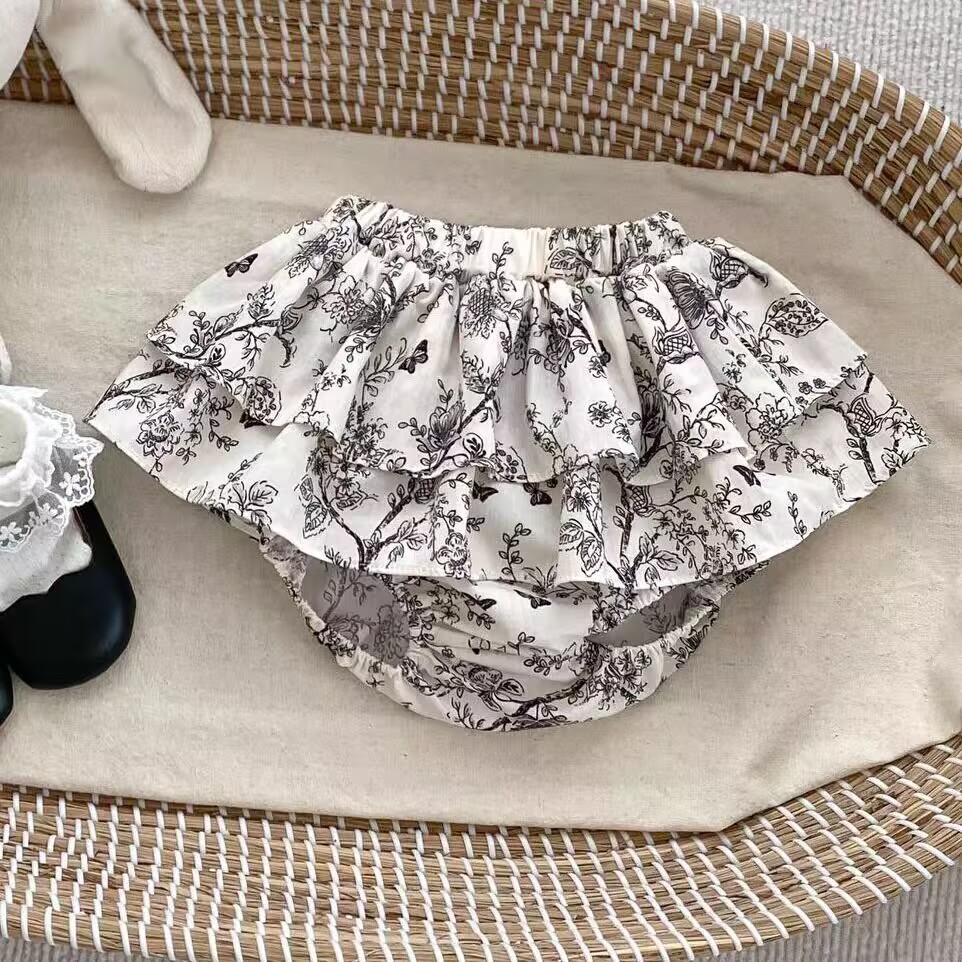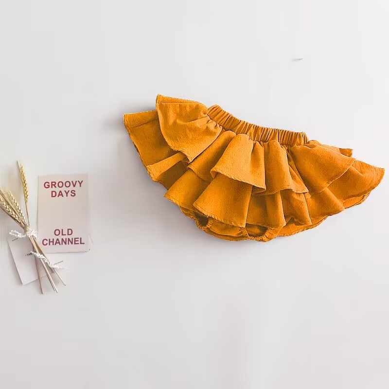 국경 간 소녀 Culottes 단색 공주 버드 반바지 대형 PP 바지 더블 레이어 러플 베이비 케이크 폰툰 스커트