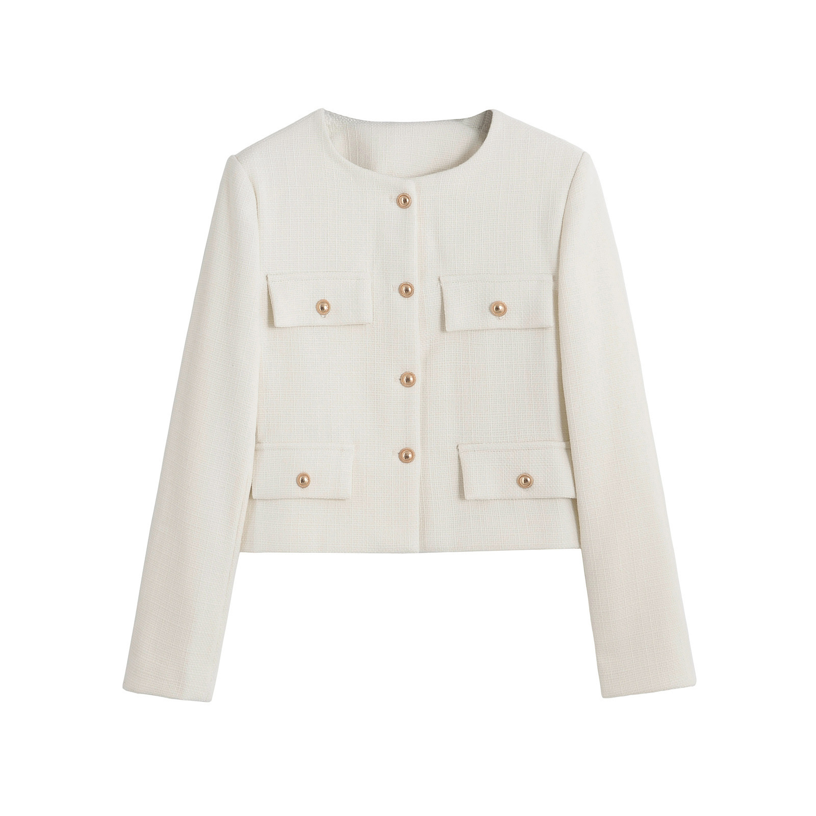 2025 봄 새로운 유럽과 미국의 국경 여성 우아한 패션 라운드 넥 샤넬 버튼 코트 w08 0293