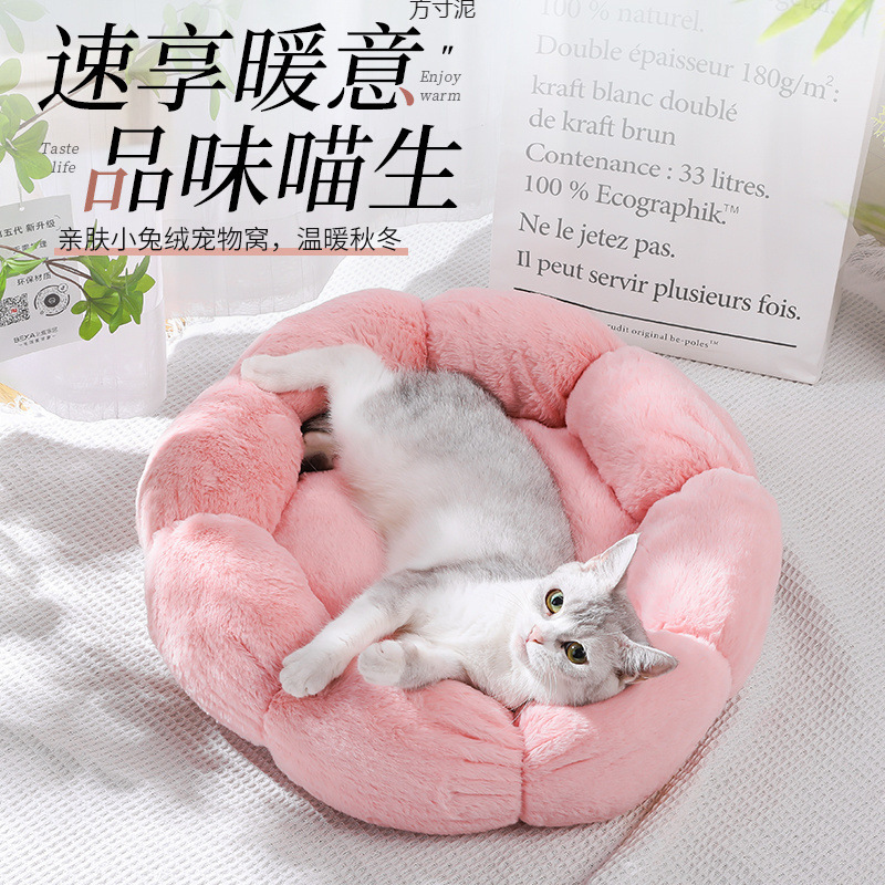 인터넷 축하 꽃 고양이 둥지 겨울 따뜻한 깊은 수면 둥지 개 둥지 꽃잎 고양이 둥지 고양이 고양이 귀여운스토어 가기