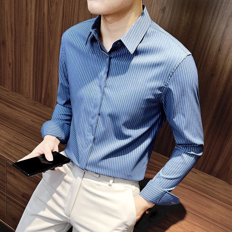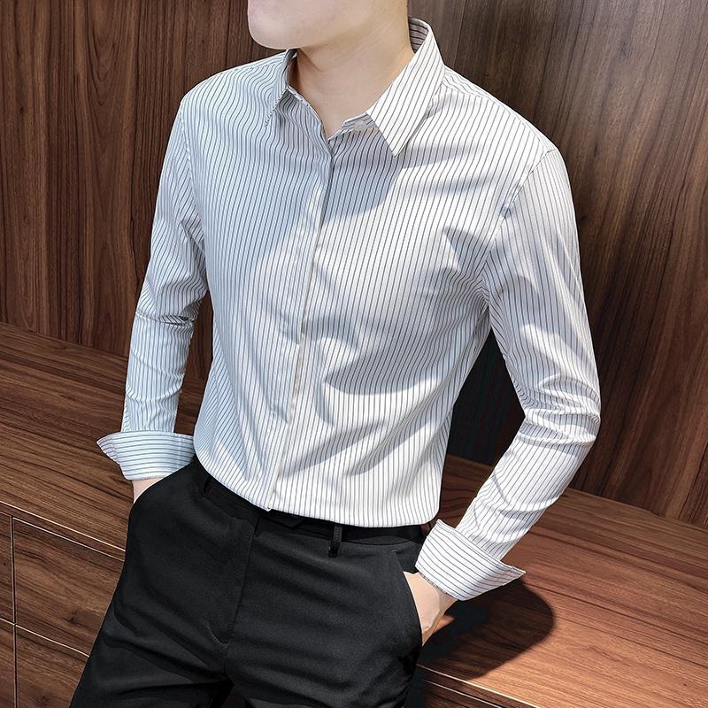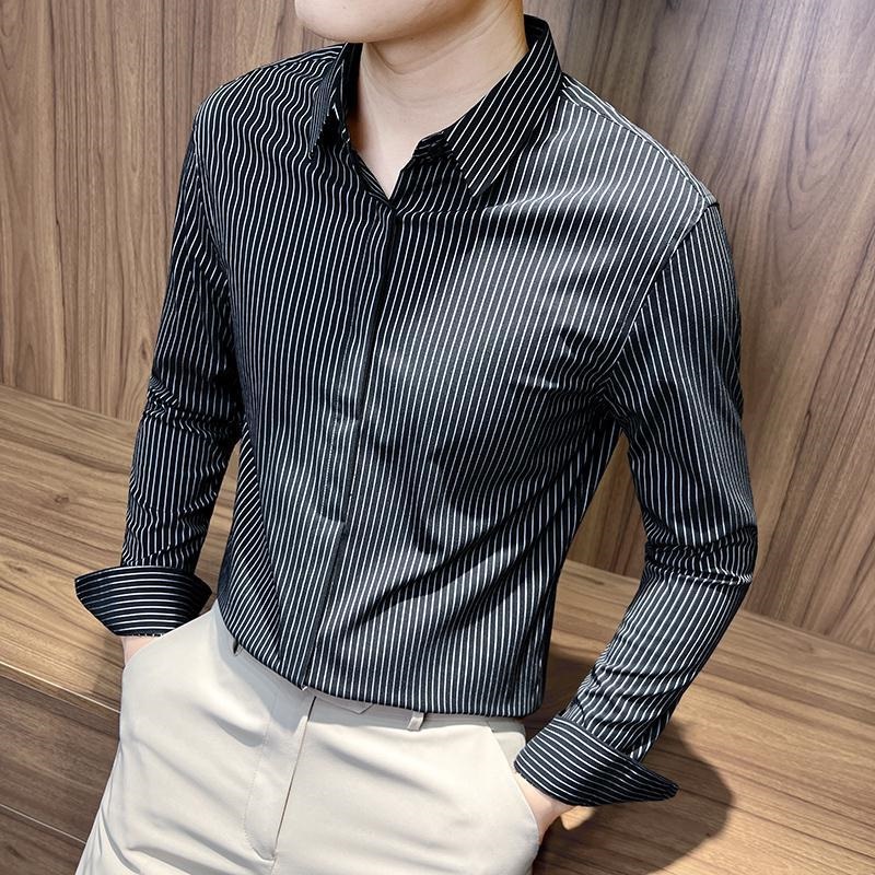 셔츠 남자 긴팔 봄 2024 새로운 하이 엔드 센스 비즈니스 캐주얼 남성 최고 하이 엔드 수직 스트라이프 셔츠스토어 가기