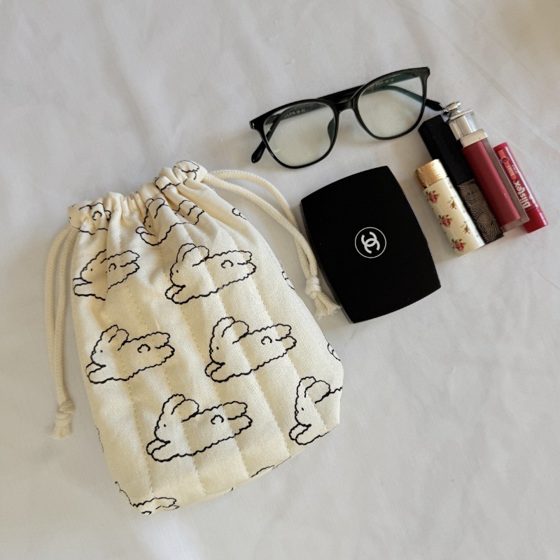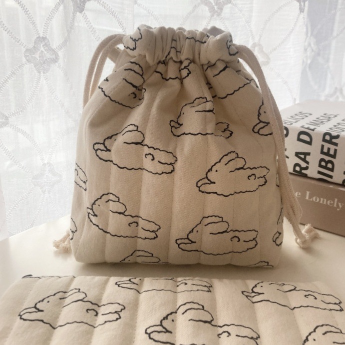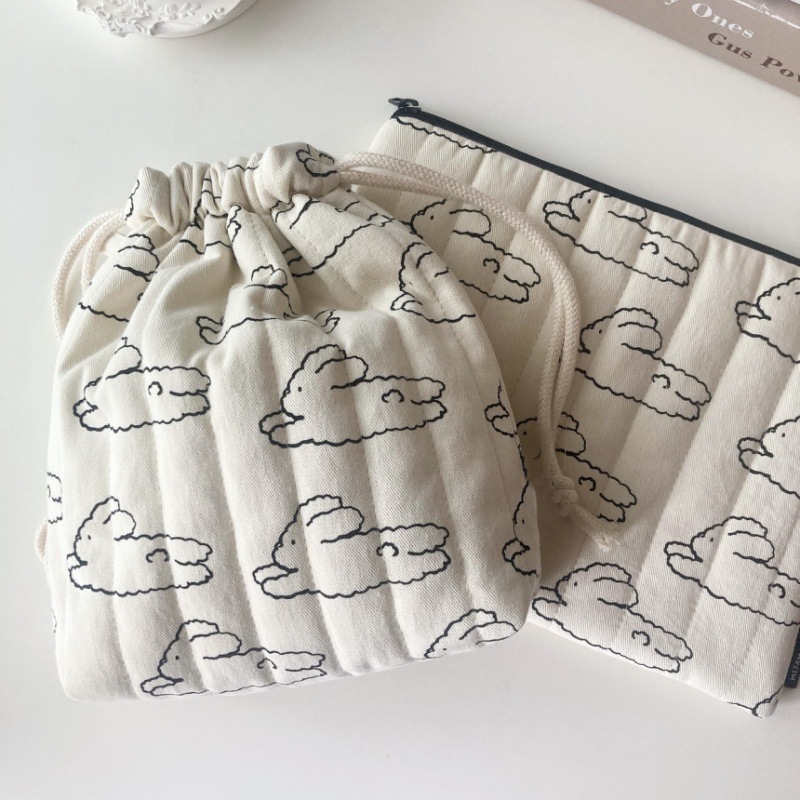 한국 인스 클라우드 토끼 퀼트 면 미니 가방 여행용 화장품 수납 가방 끈 조임식 수납백스토어 가기