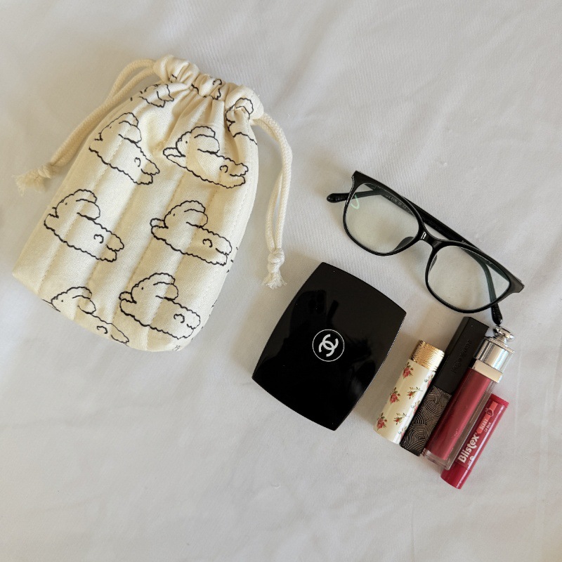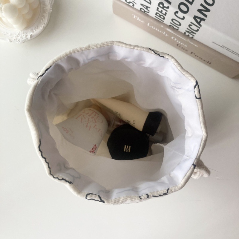 한국 인스 클라우드 토끼 퀼트 면 미니 가방 여행용 화장품 수납 가방 끈 조임식 수납백