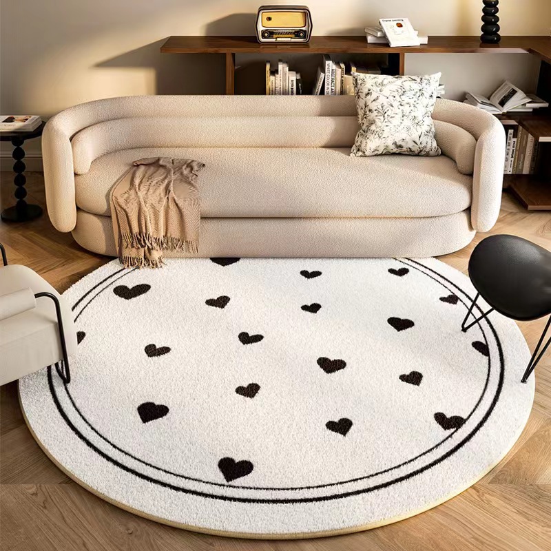 신선한 간단한 꽃 라운드 매트 거실 소파 커피 테이블 카펫 크림 스타일 어린이 방 침실 카펫