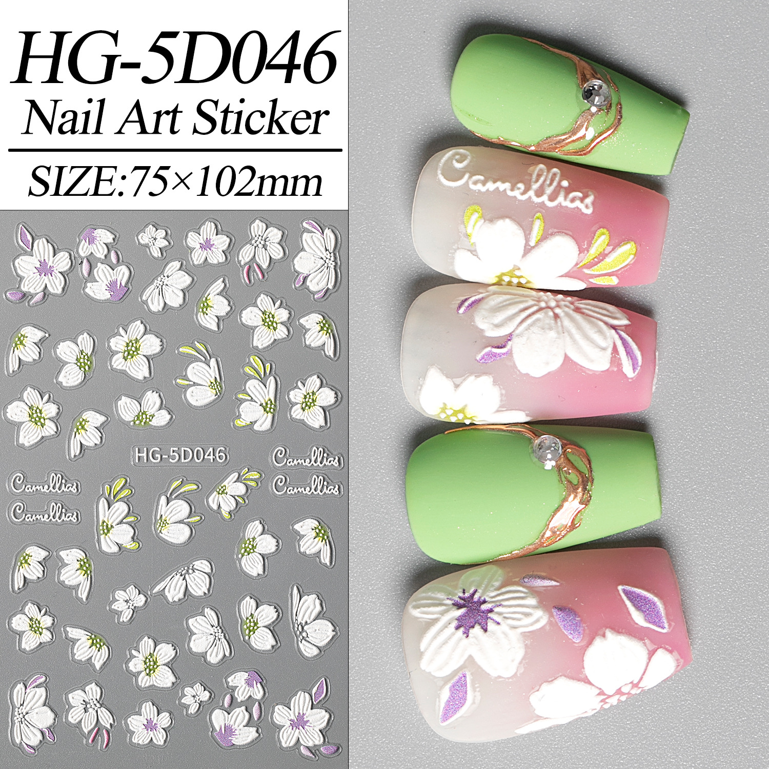 그물 빨간 동백 네일 스티커 5D 구호 3 차원 손으로 그린 작은 신선한 얼음 손톱 스티커 보석 HG스토어 가기