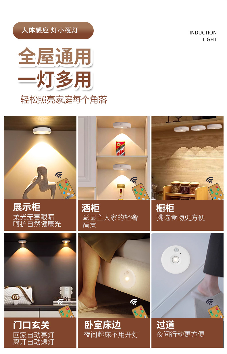 충전식 센서 야간등 스포트라이트 리모컨 자석 와인 캐비닛 디스플레이 그리드 고양이 눈 센서등 LED등스토어 가기