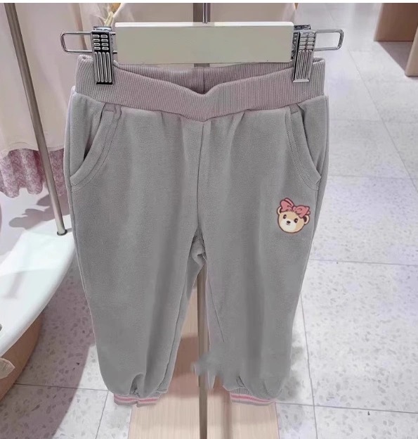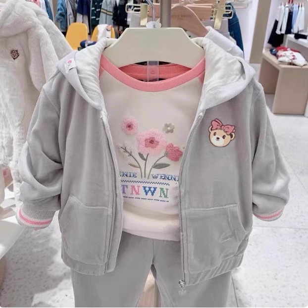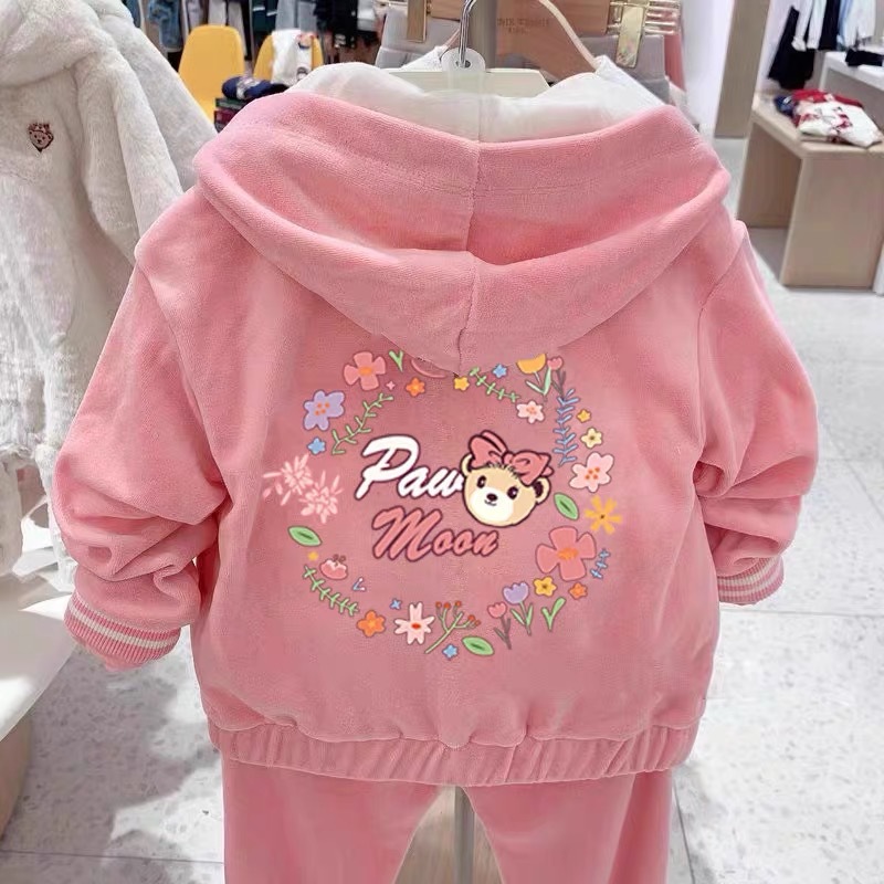 가을 겨울용 벨벳 곰돌이 여아 캐주얼 스포츠 지퍼 재킷 바지 세트 (중대형 아동용)스토어 가기