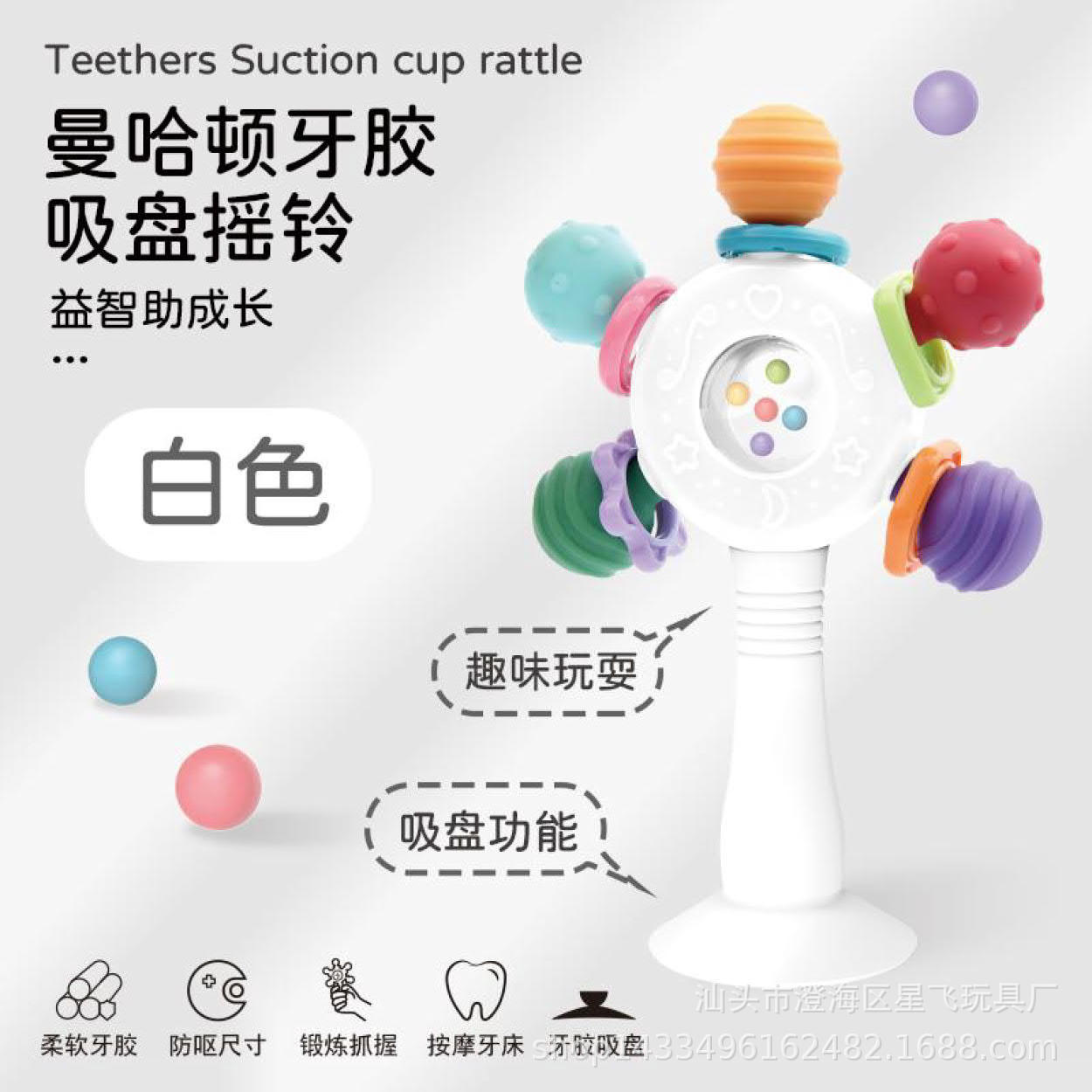 • 흡입 컵이 있는 맨해튼 딸랑이 스틱 흰색 창 상자, 대량 및 좋은 가격