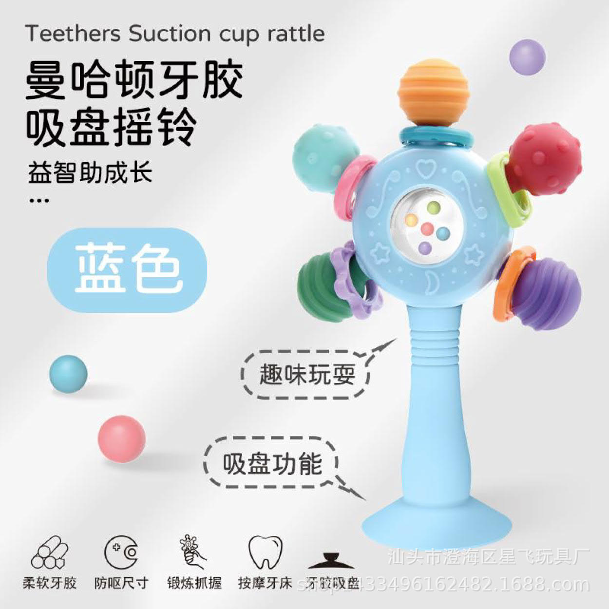 • 흡입 컵이 있는 맨해튼 딸랑이 스틱 파란색 창 상자, 대량 및 좋은 가격