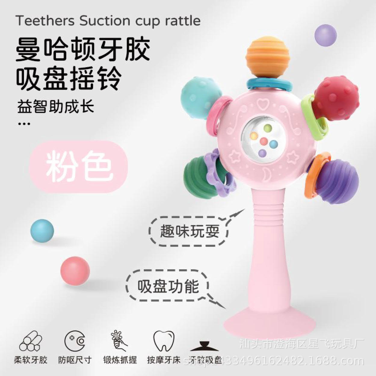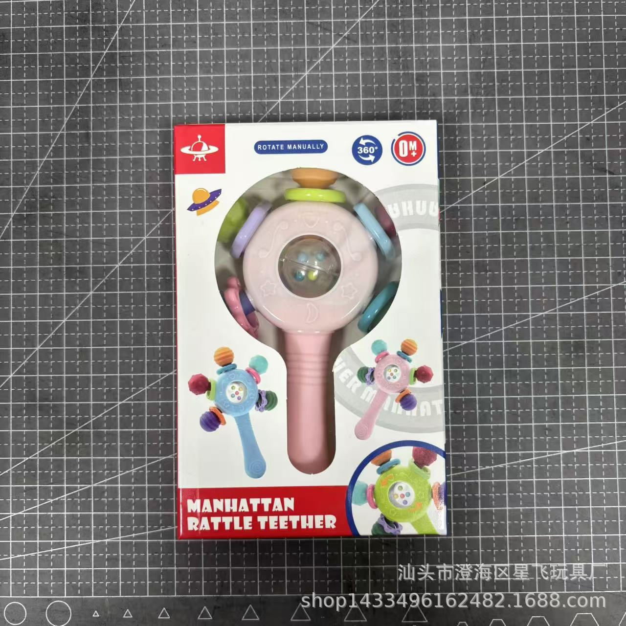 • 흡입 컵이 있는 맨해튼 딸랑이 스틱, 핑크색 창 상자, 대량 및 좋은 가격