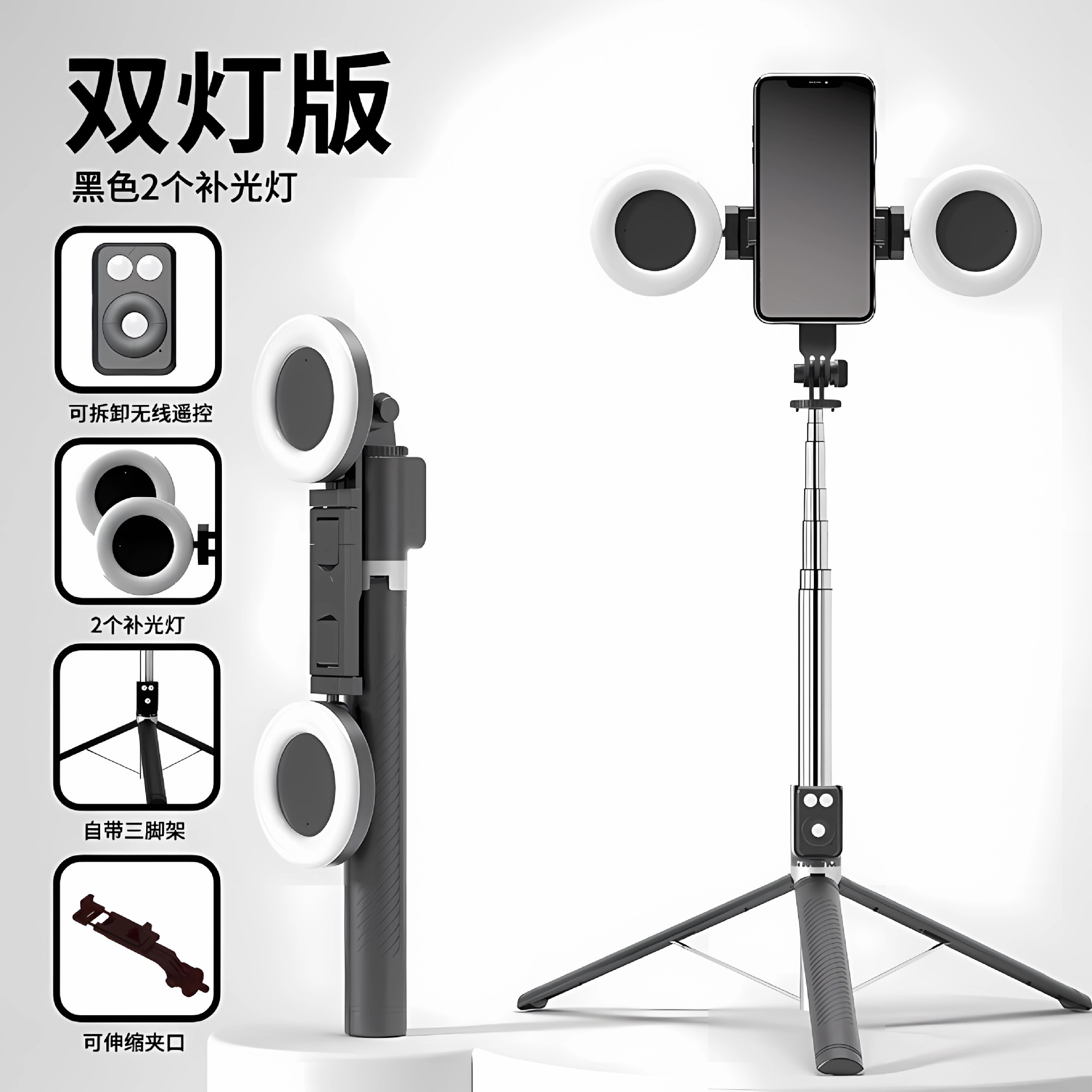 • 【 1.7m 】 검정색 이중 소형 사각형 조명, Douyin Bluetooth 충전 리모컨 포함