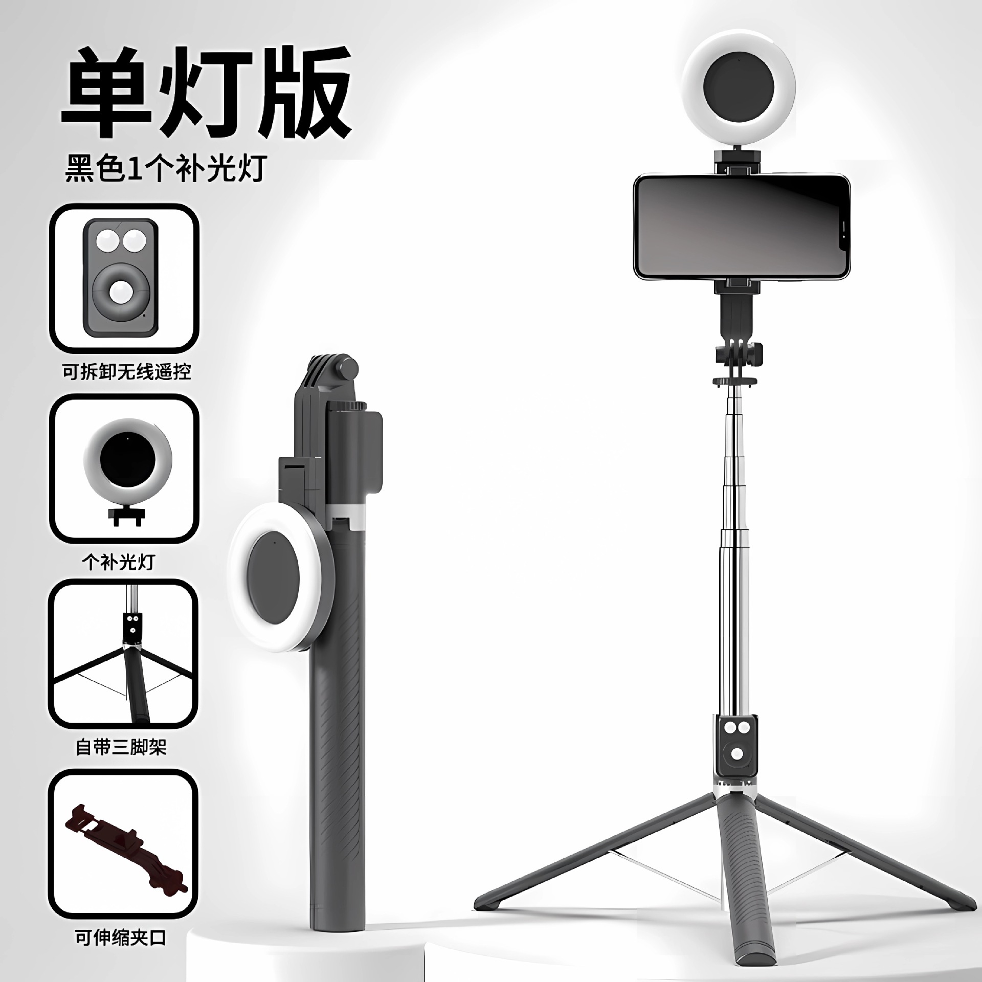 • 【 1.7m 】 검정색 단일 소형 사각형 조명, Douyin Bluetooth 충전 리모컨 포함