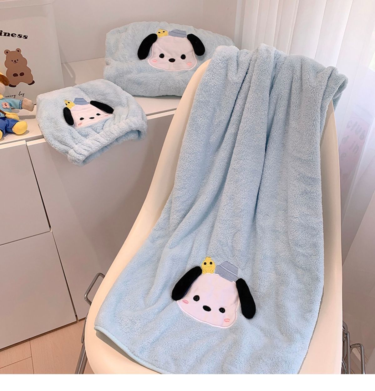 파차 개 만화 귀여운 수건 부드러운 흡수성 산호 벨벳 목욕 수건 세안 및 목욕 두꺼운 건조 헤어 타월 세트