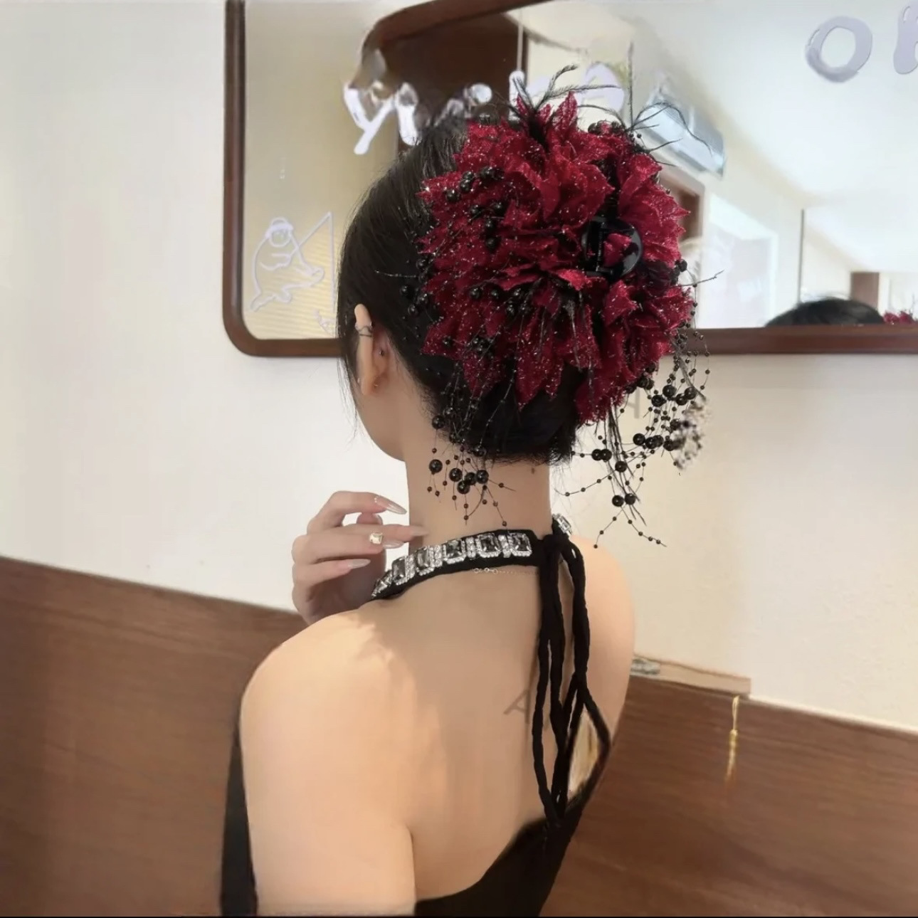 새로운 고급 절묘한 올 매치 패션 레트로 홍콩 스타일 반짝이는 꽃 우아한 화이트 매치 헤어핀 상어 홈 클립스토어 가기