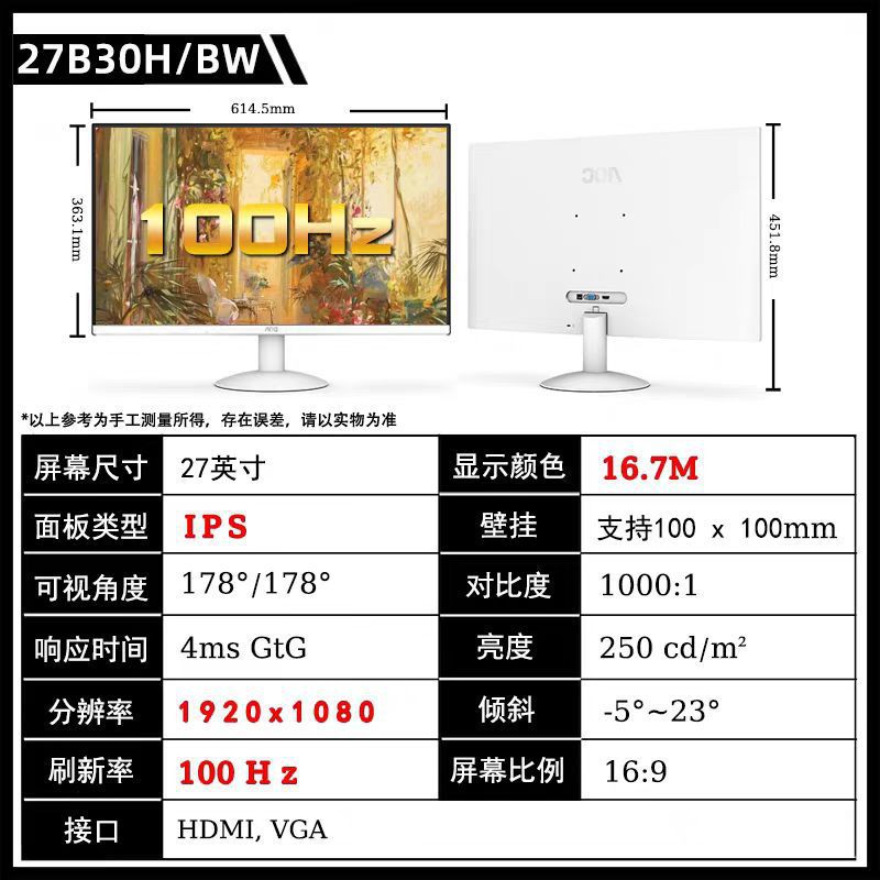 • 27B30H/BW 27inch IPS 100Hz (120Hz로 업그레이드)