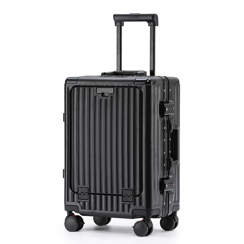 USB 충전 범용 휠 새로운 여행 가방 전면 오픈 커버 다기능 수하물 알루미늄 프레임 트롤리 케이스스토어 가기