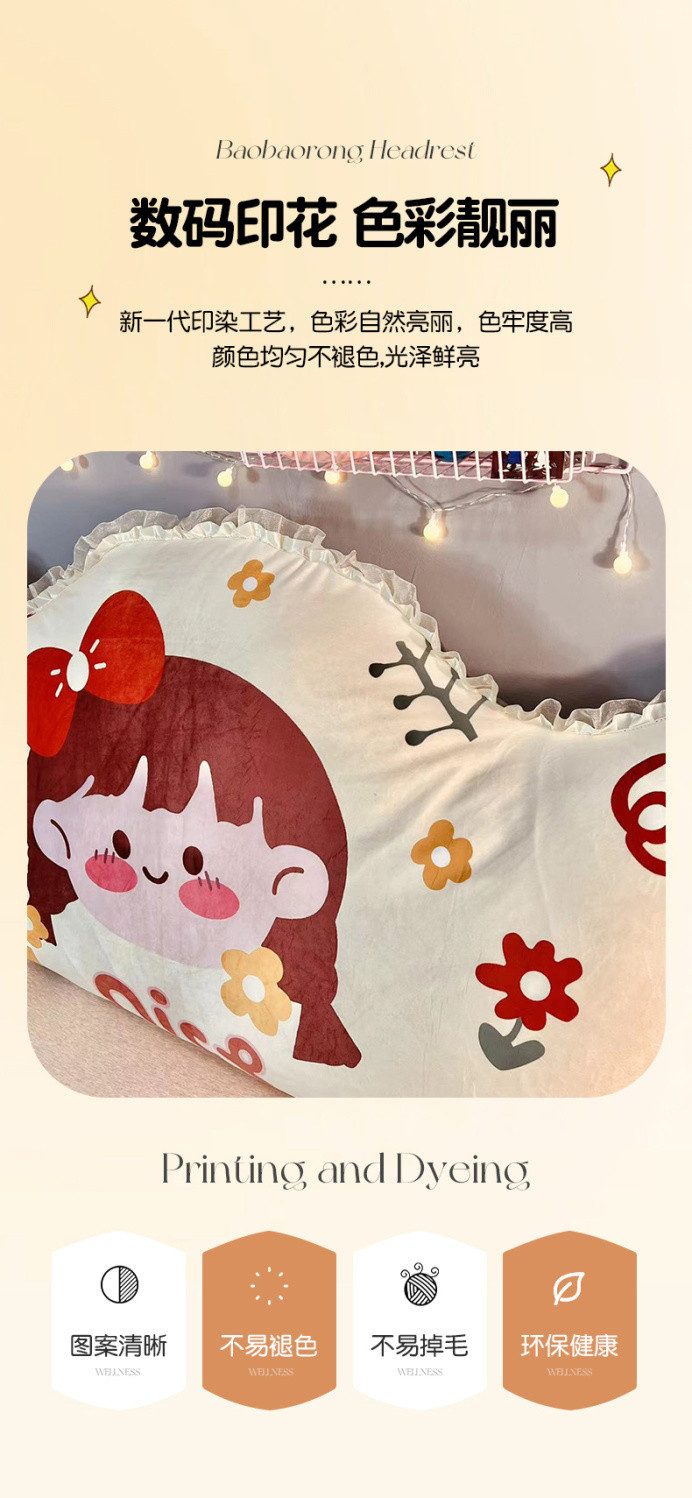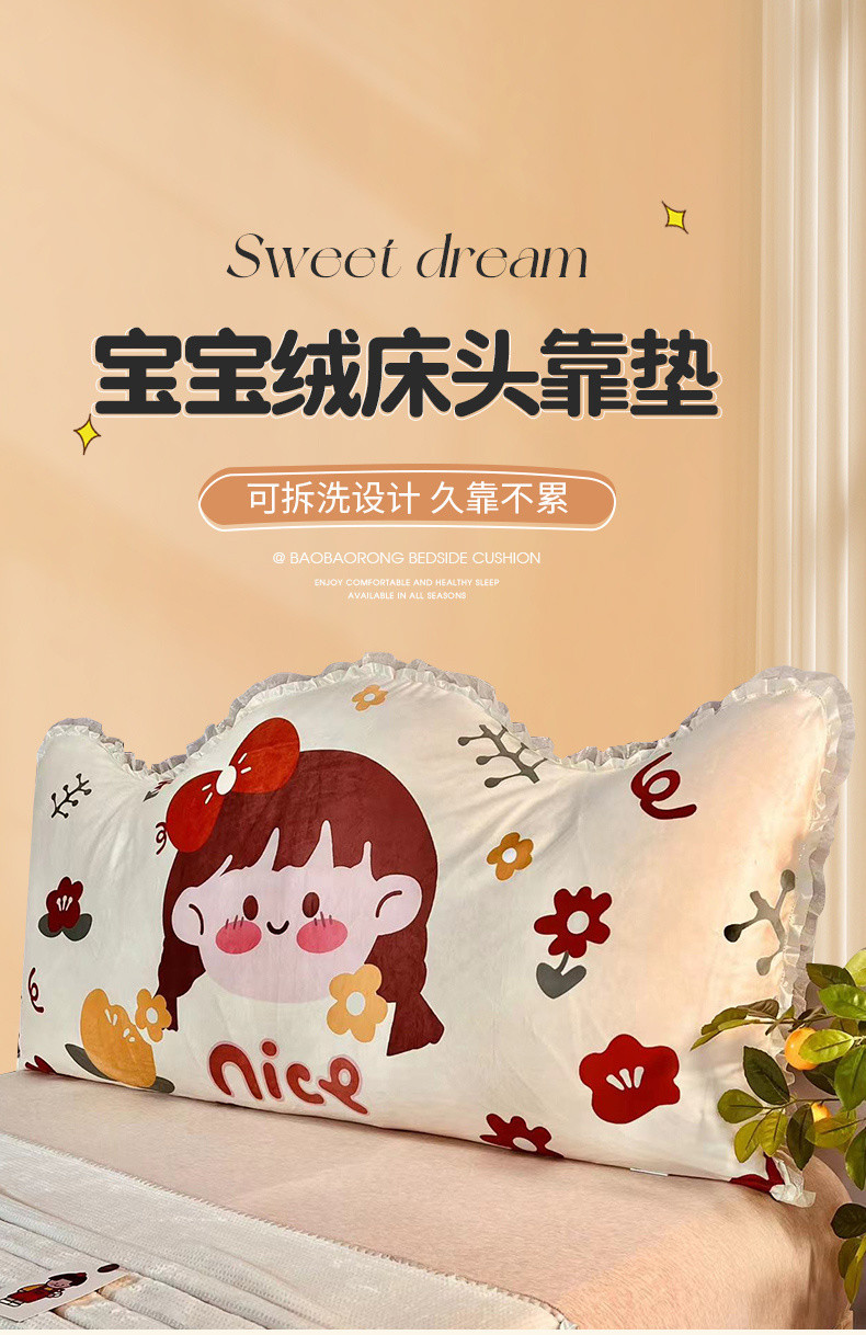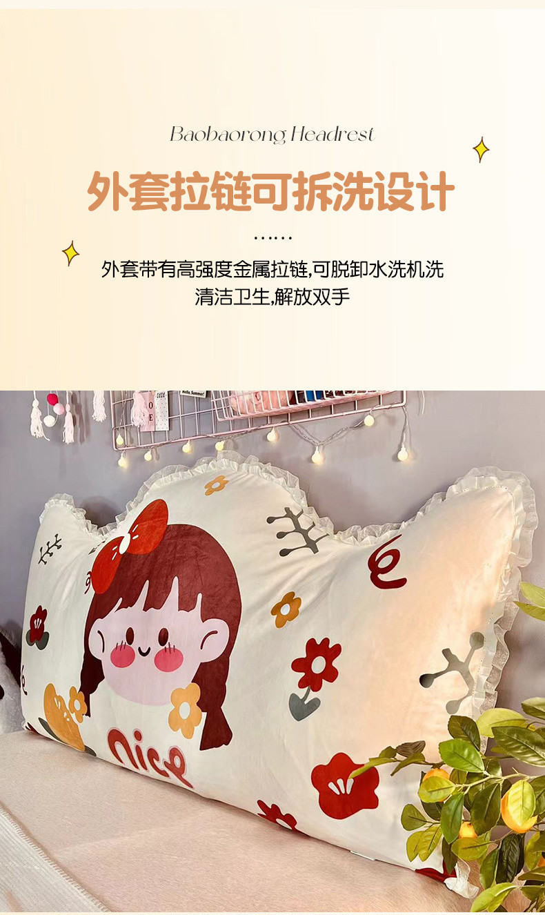 얇은 침대 옆 쿠션 침실 만화 어린이 이동식 및 세척 가능한 충돌 방지 허리 보호 백레스트 소프트 백 공주 스타일 베개